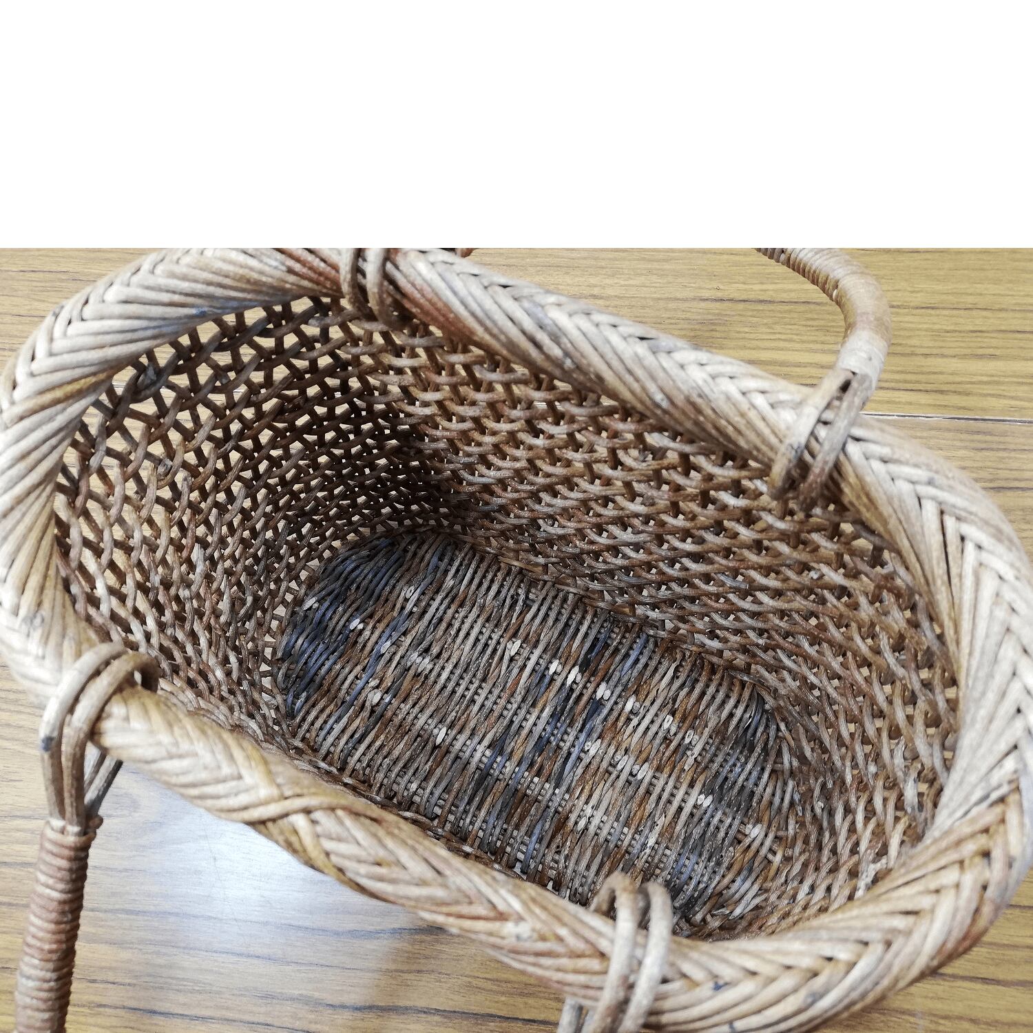 骨組みであるたて芯が蛇行するようにしっかり固定され、かご本体の強度も高く、物を入れてもヨレたり型崩れをすることはありません。※かごが極端に乾燥してしまうと、蔓がやせて編みのゆるみにつながります。