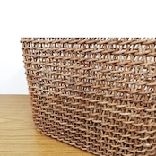 編み芯をねじりながら上下互い違いに編み込んでいくので、骨組みであるたて芯が蛇行する形でしっかり固定され、かご本体の強度も強く、物を入れてもヨレたり型崩れをすることはありません。
