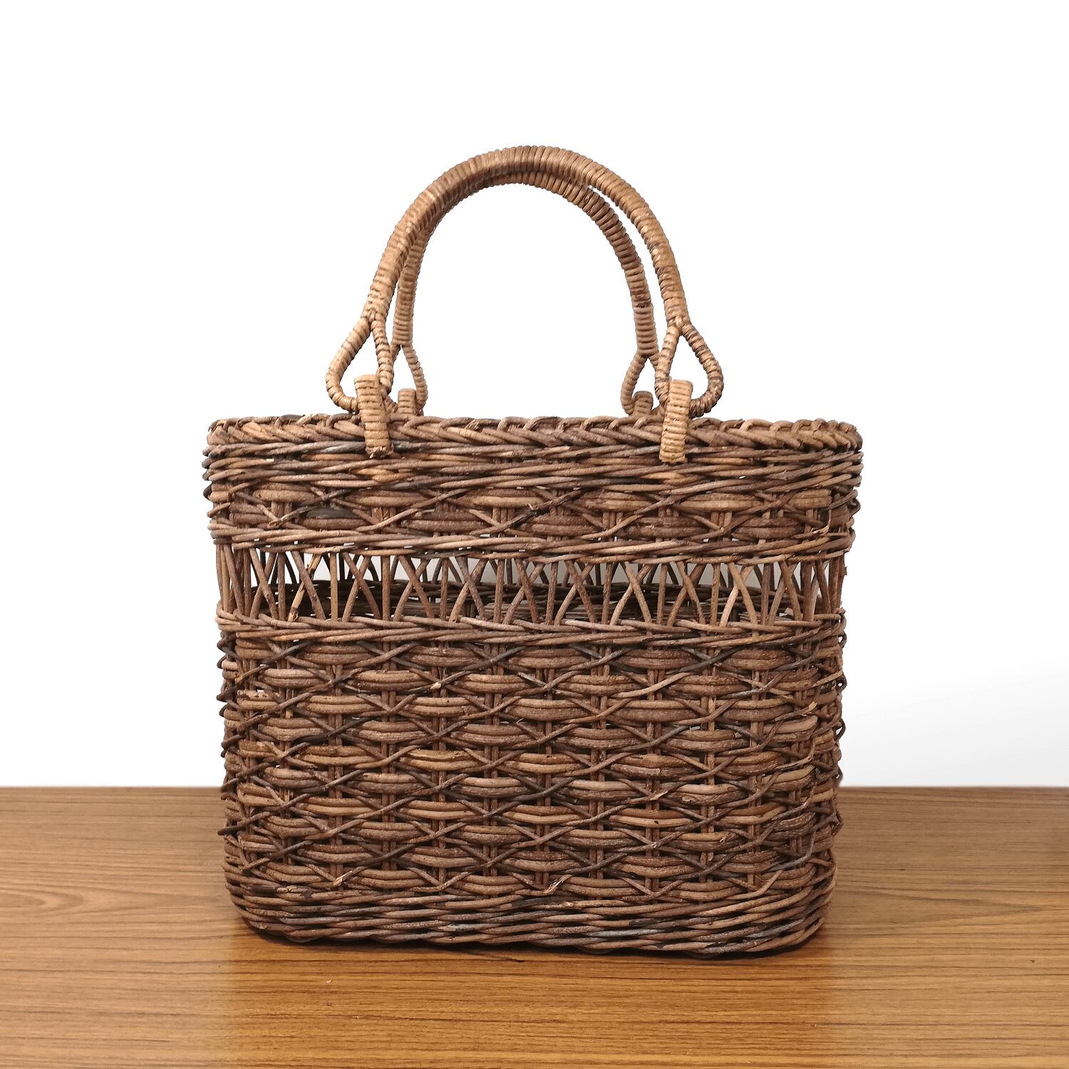 あけび-かごバッグ|割引品|たすき編み|矢来編み|中サイズ|小判底