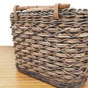 あけび蔓の材料不足の影響もあり、かごの上部と下部に黒っぽいあけび蔓を多用しましたので、今回は割引価格での販売となっております。