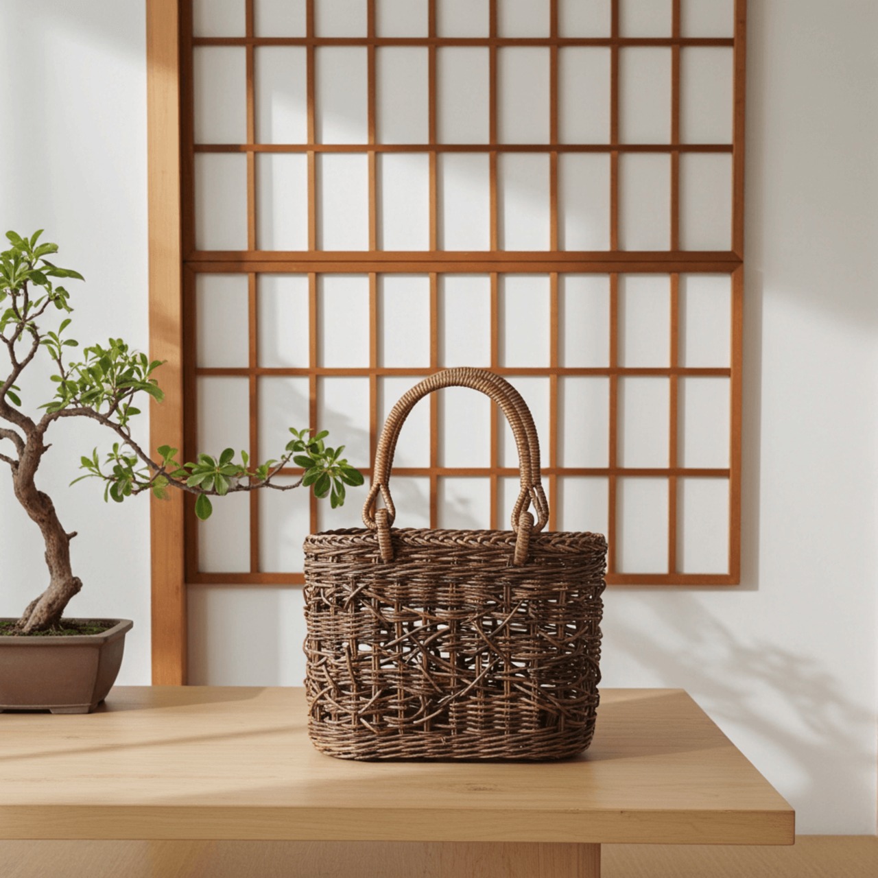 あけび-かごバッグ|乱れ編み|小サイズ|小判底