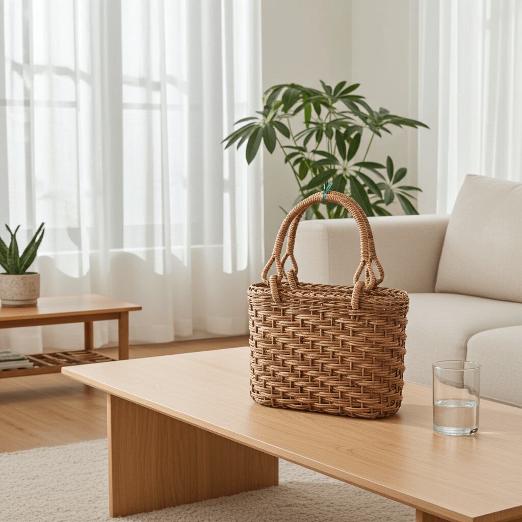 大き目の長財布やお弁当箱もすっぽりと収まるので、小サイズでありながらとても実用的なかごバッグです。