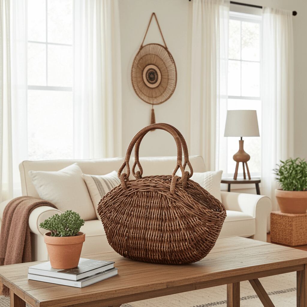 中サイズのコンパクトさと実用性が合わさった、普段使いにも最適なかごバッグです。