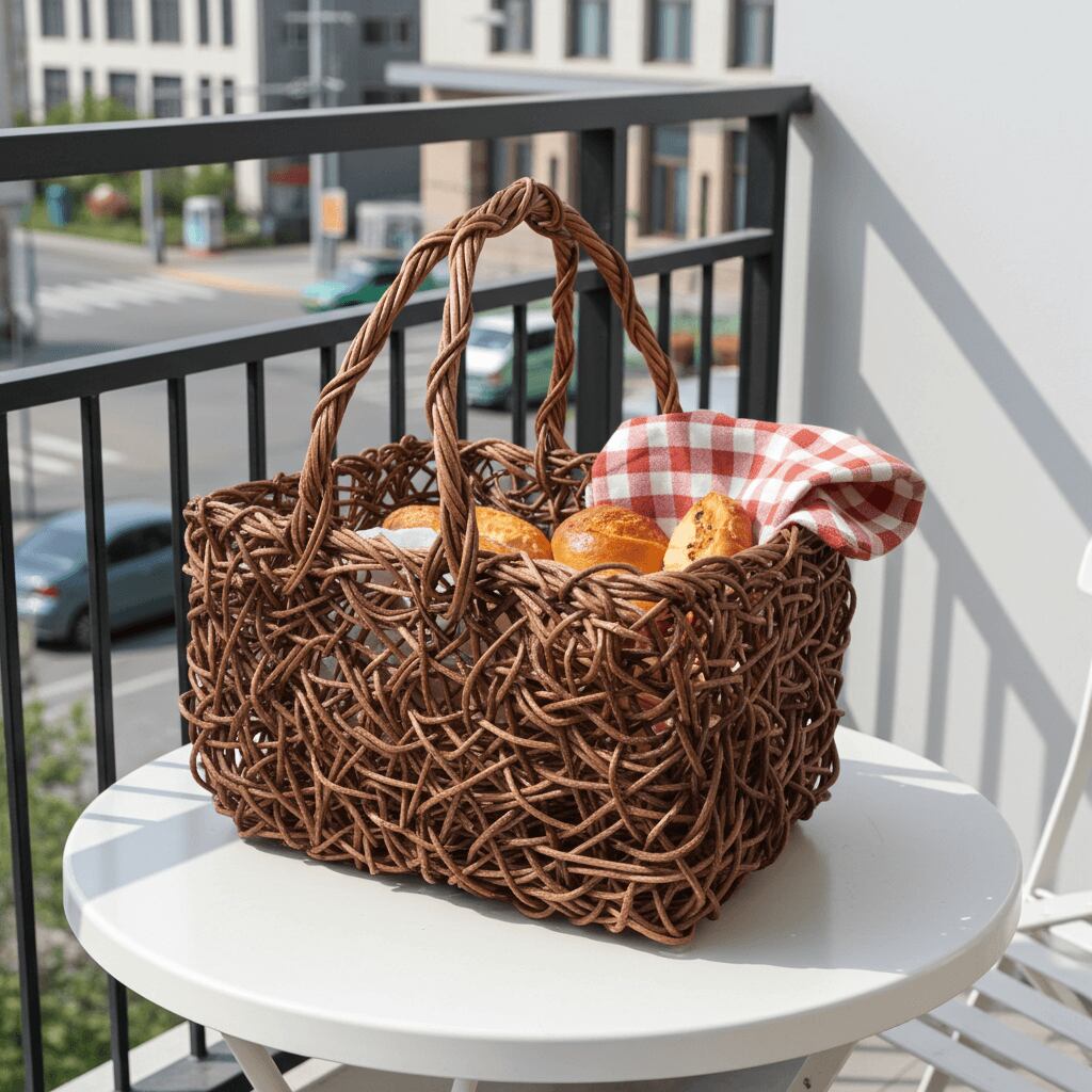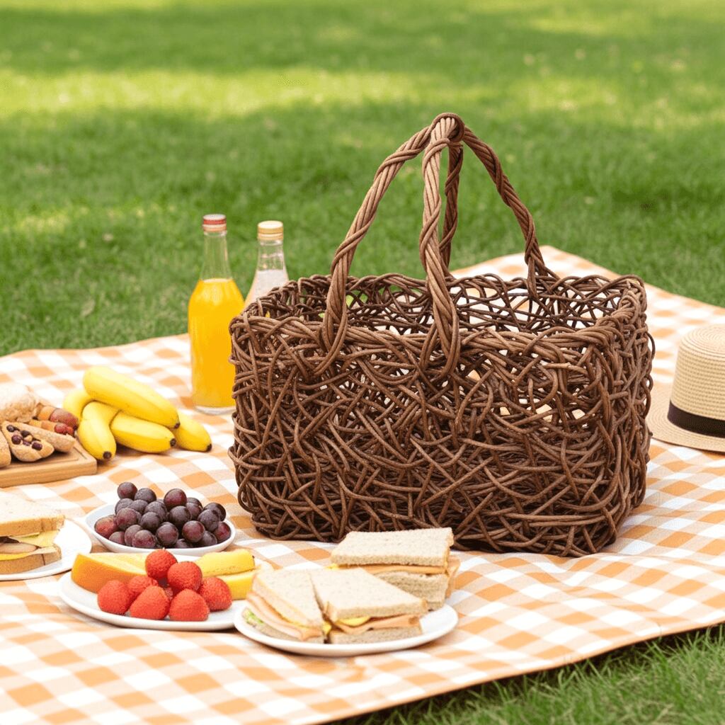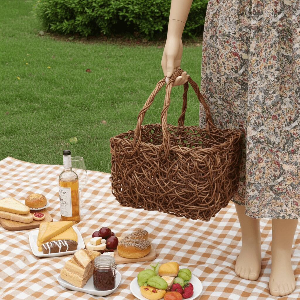 あけび-かごバッグ|ピクニックバスケット|乱れ編み|3×4方形底|一本手