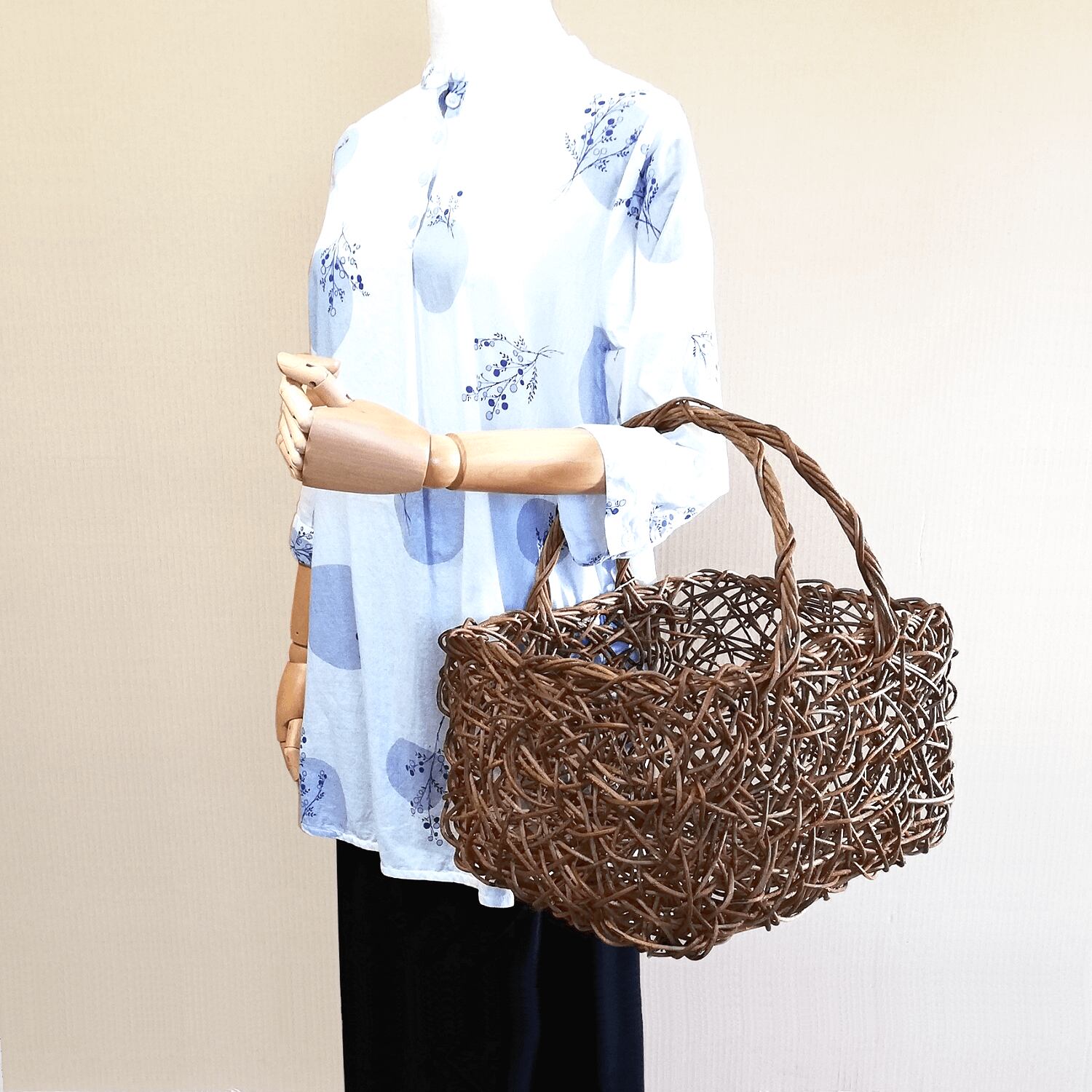 お買い物などの普段使いだけでなく、お休みの日のお出掛けにもとても便利な大容量のあけび-かごバッグです。