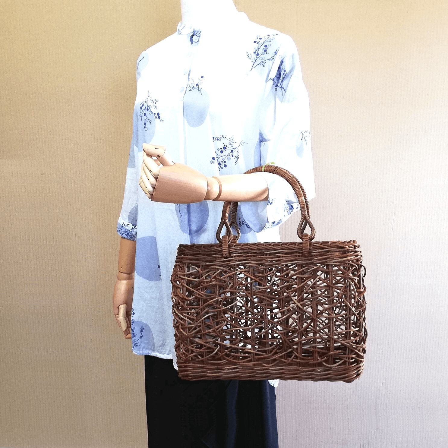 あけび-かごバッグ|乱れ編み|中サイズ|四角底