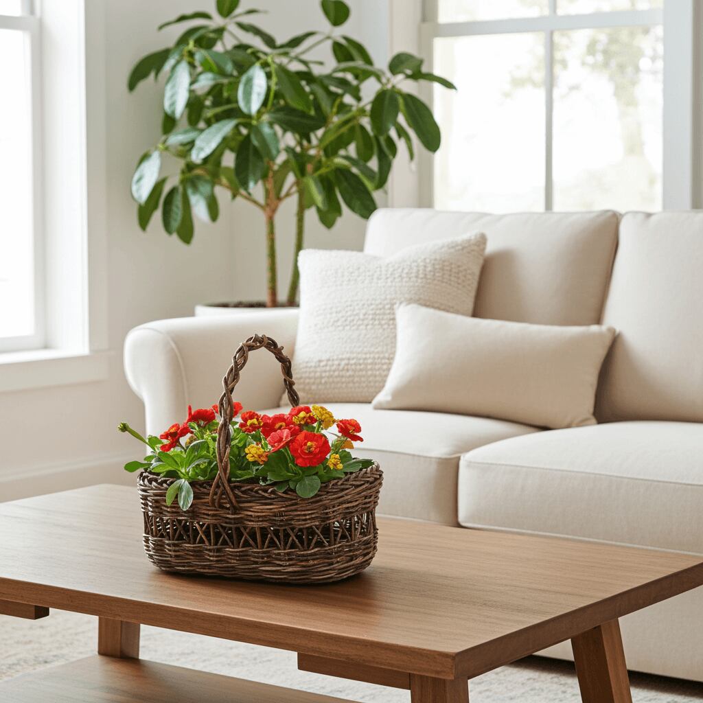 一本手(取手)とかごのバランスが良く、サイズが小ぶりなため、お部屋のいろいろな場所でご使用いただけます。