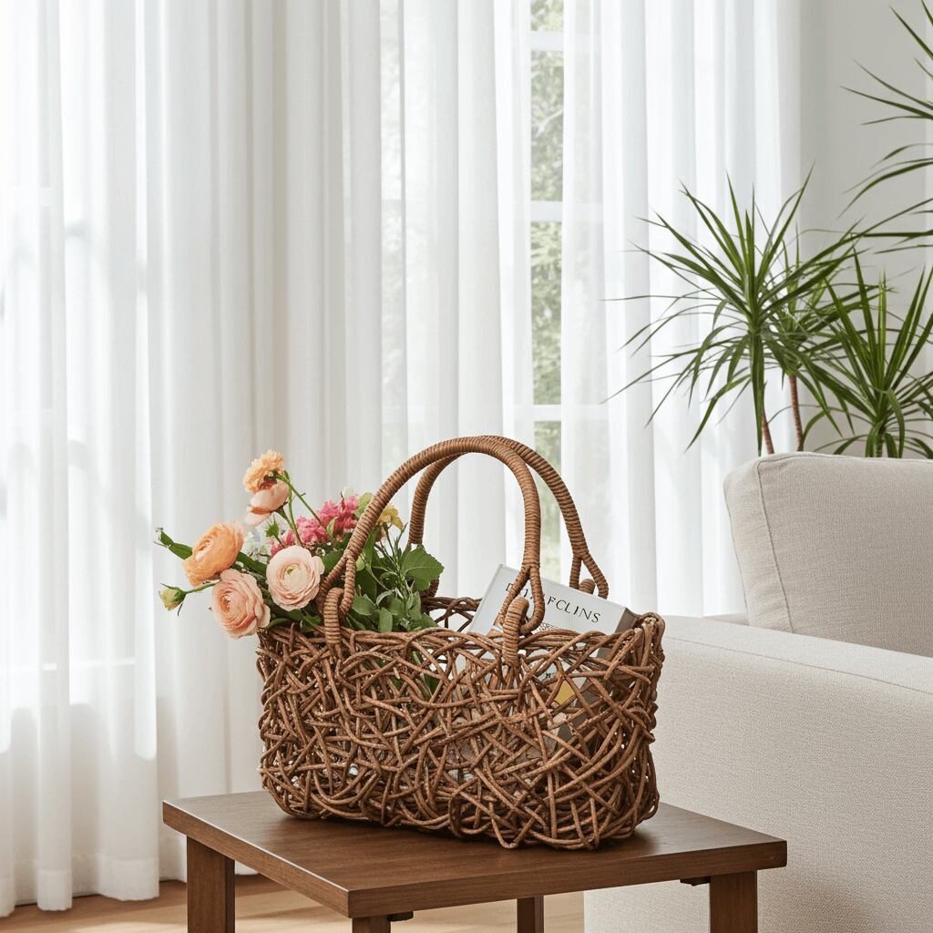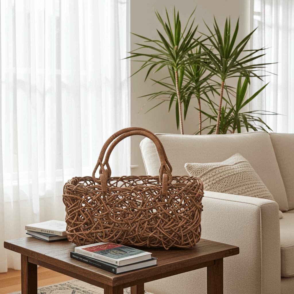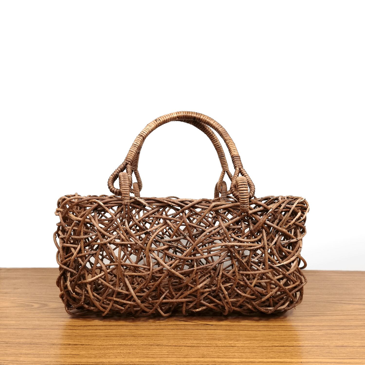 あけび-かごバッグ|乱れ編み|中サイズ|四角底|浅型