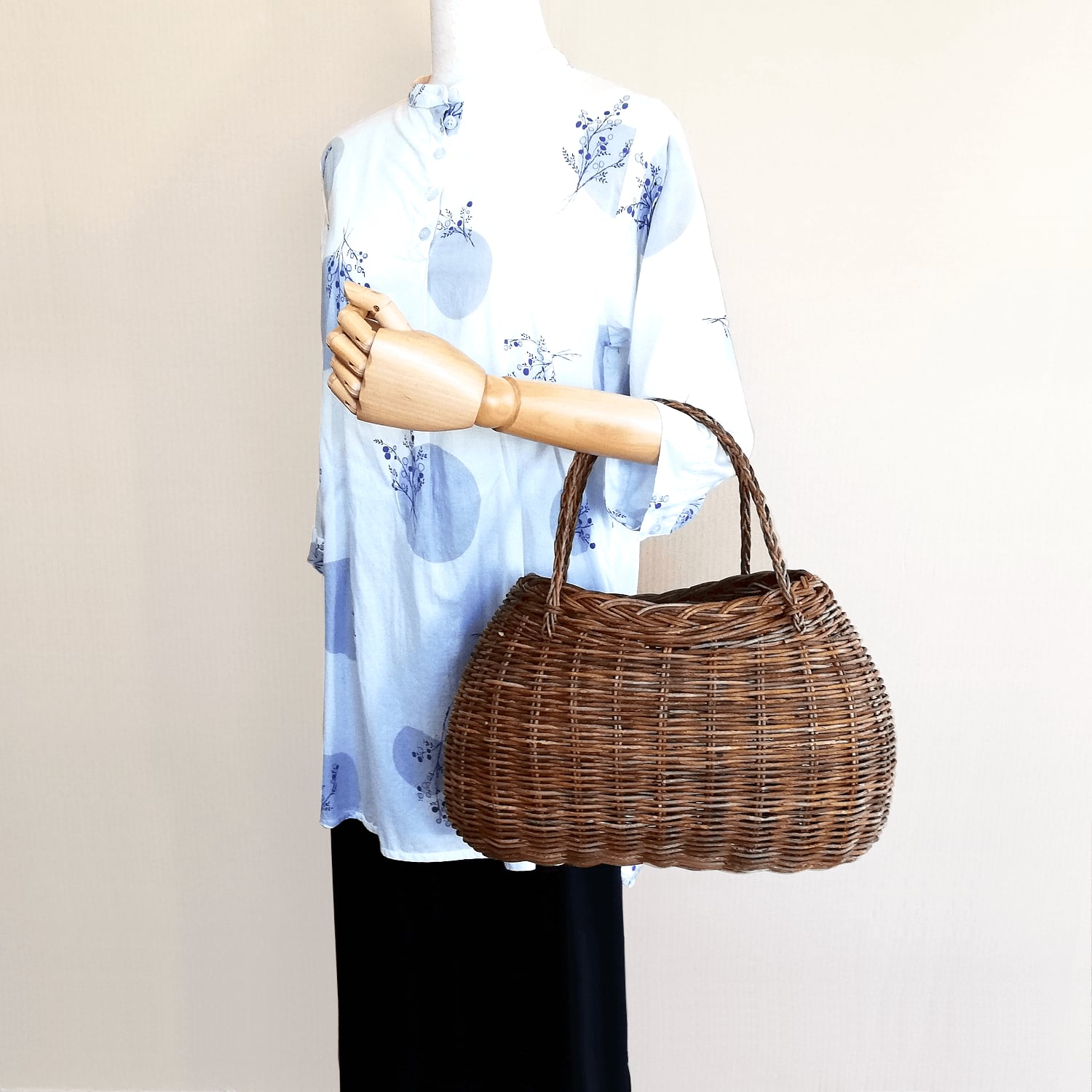 あけび-かごバッグ|割引品|並編み|中サイズ|胴張り|舟底|うろこ止め|グニ手