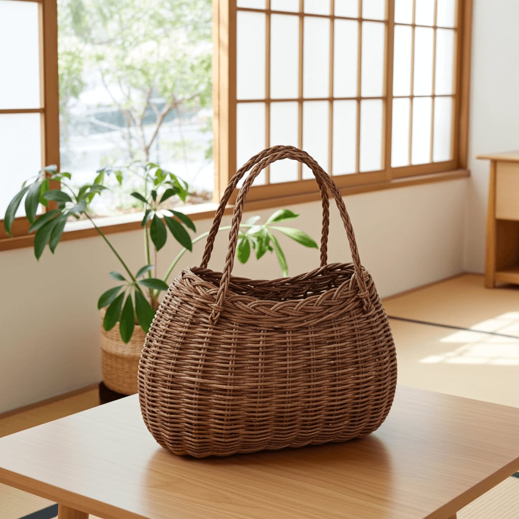 シンプルな並編みで制作しているため、かごの外側も内側もすべすべとしていて、とても使いやすいかごバッグです。