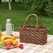 半芯を使用するため、通常の丸芯のかごよりも重量が軽く、かごの内部が白っぽい編み上がりになります。