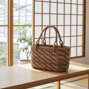 弘前ではどの職人さんも編まれるスタンダードなほら編み。近年人気の浅型タイプのあけび-かごバッグです。