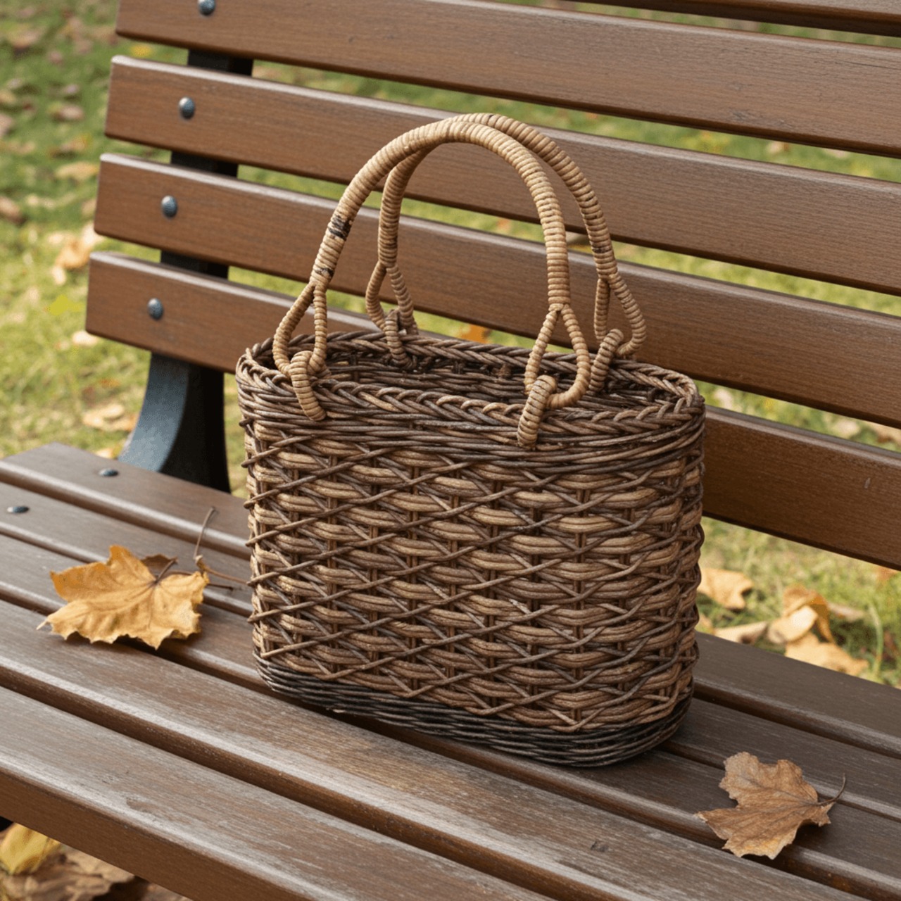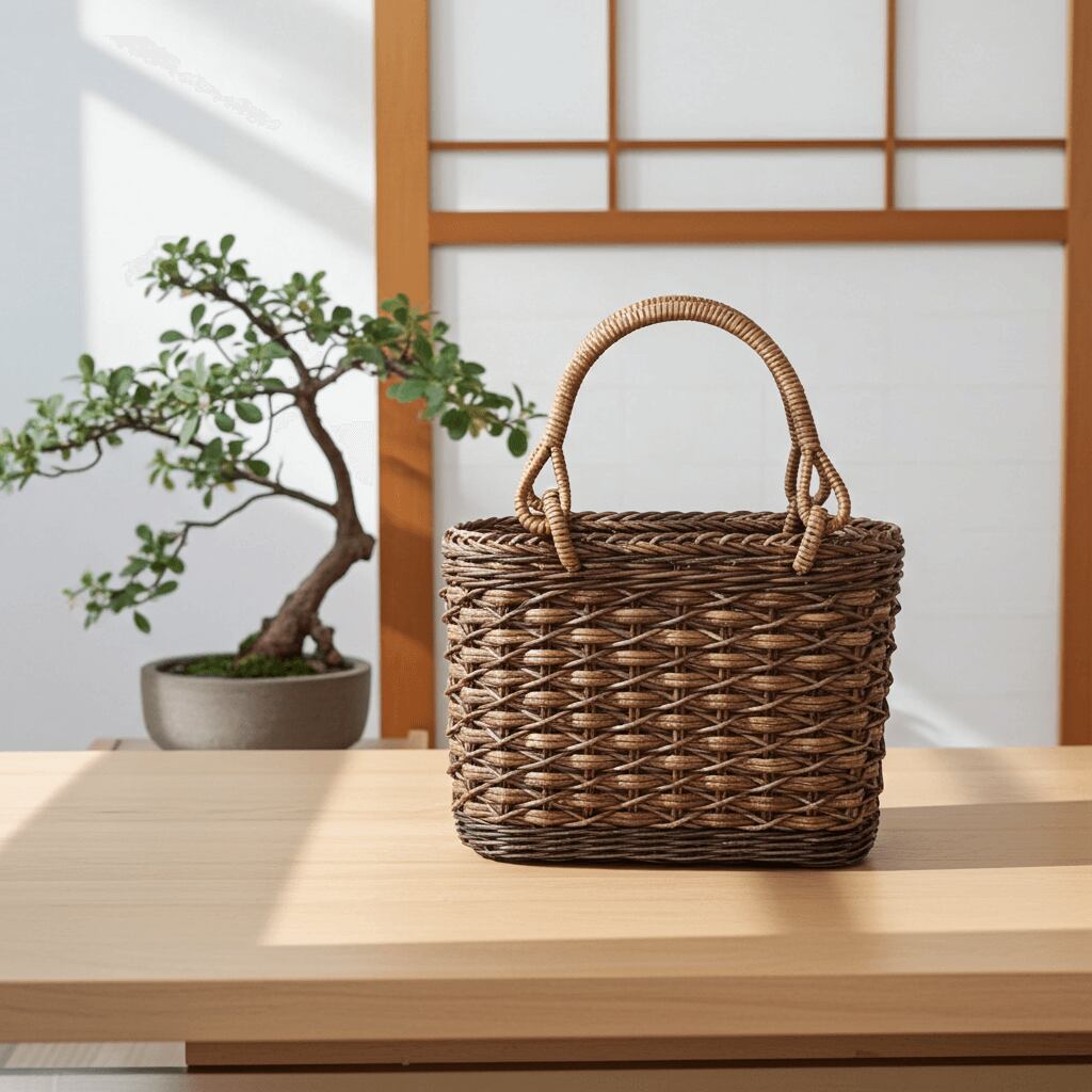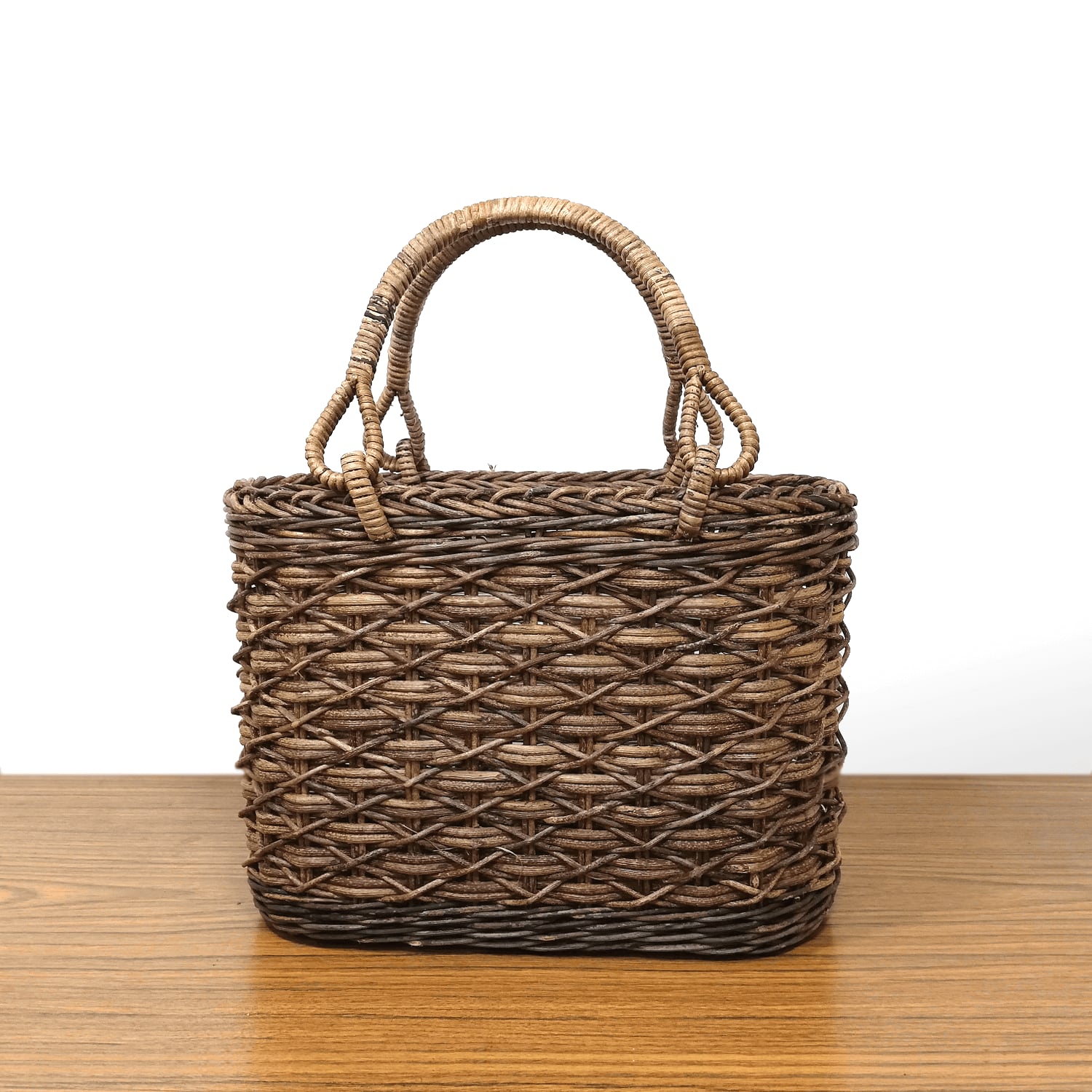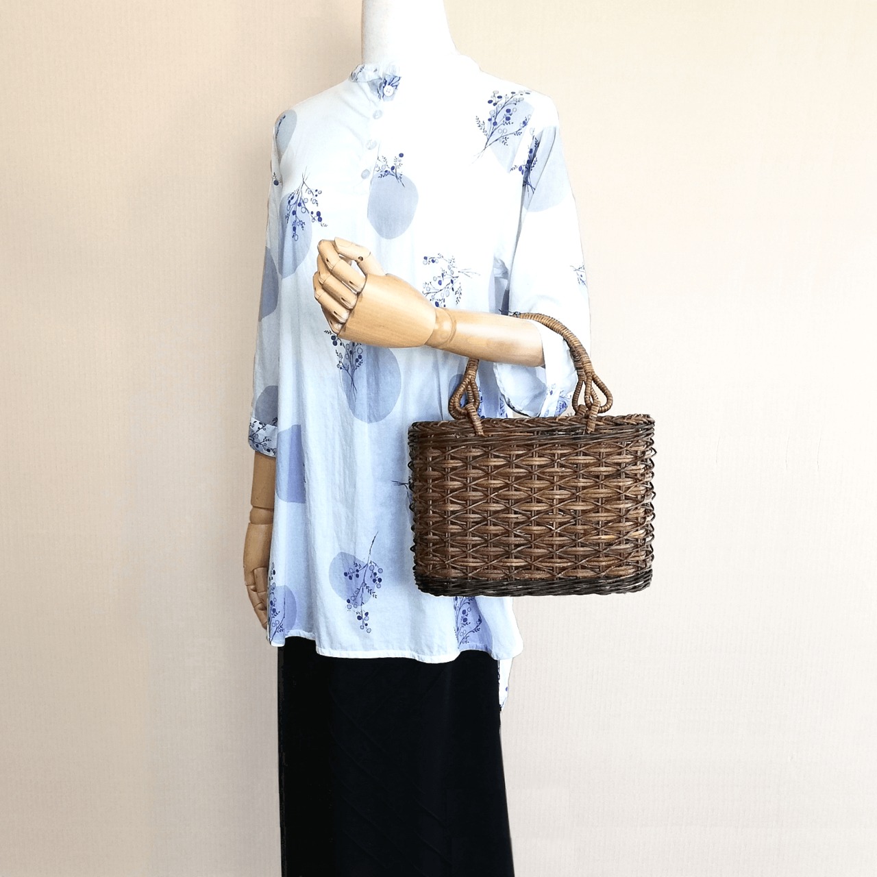 あけび-かごバッグ|割引品|たすき編み|小サイズ|小判底|黒あけび