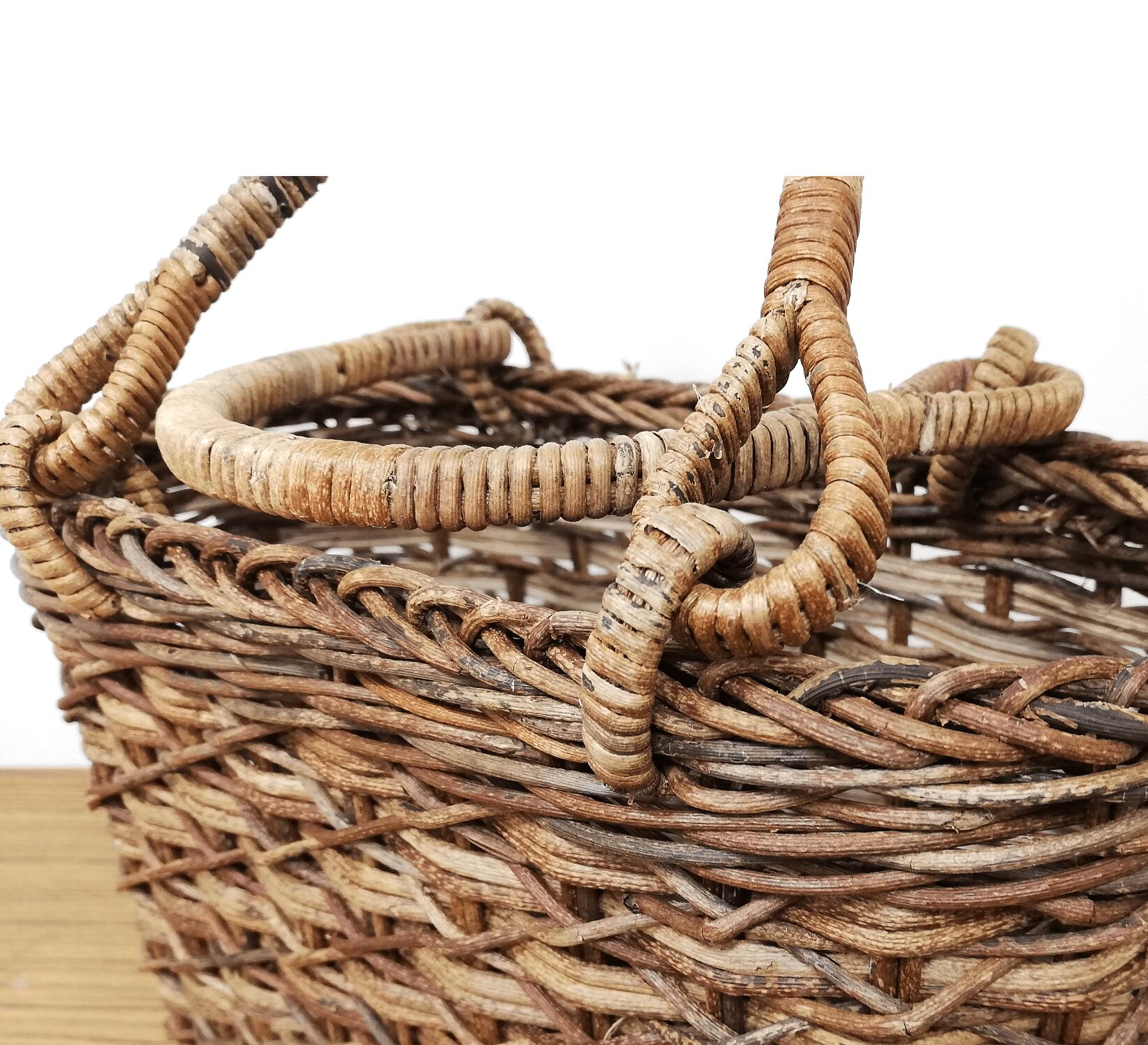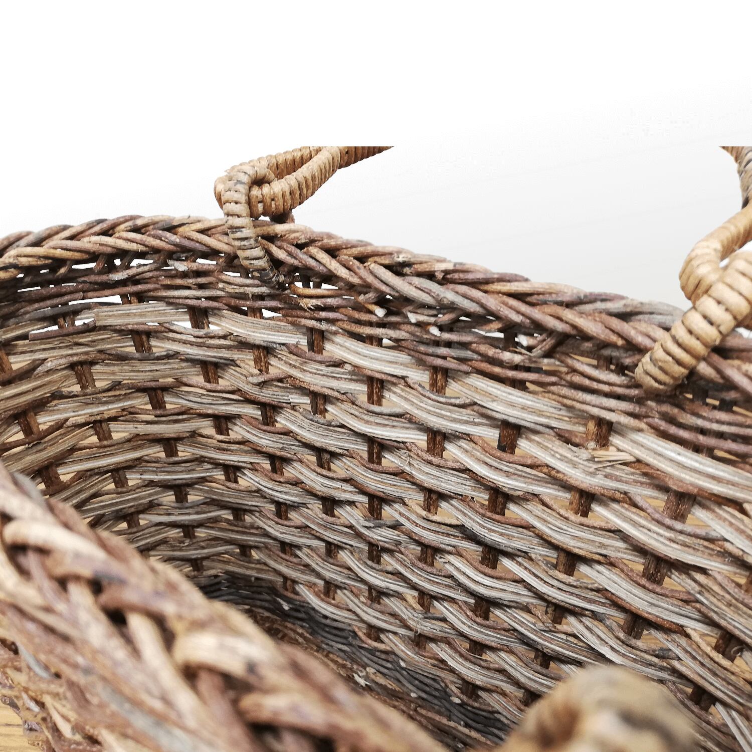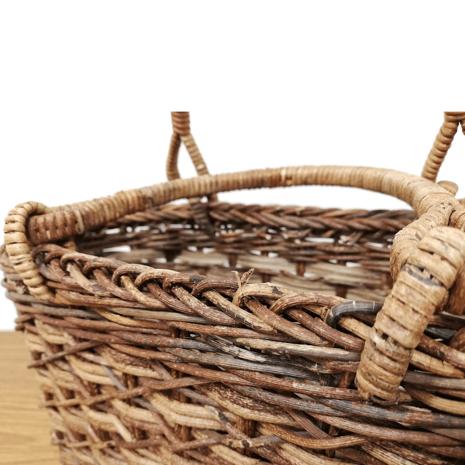 あけび蔓の材料不足の影響もあり、かごの上部と下部に黒っぽいあけび蔓を多用しましたので、今回は割引価格での販売となっております。