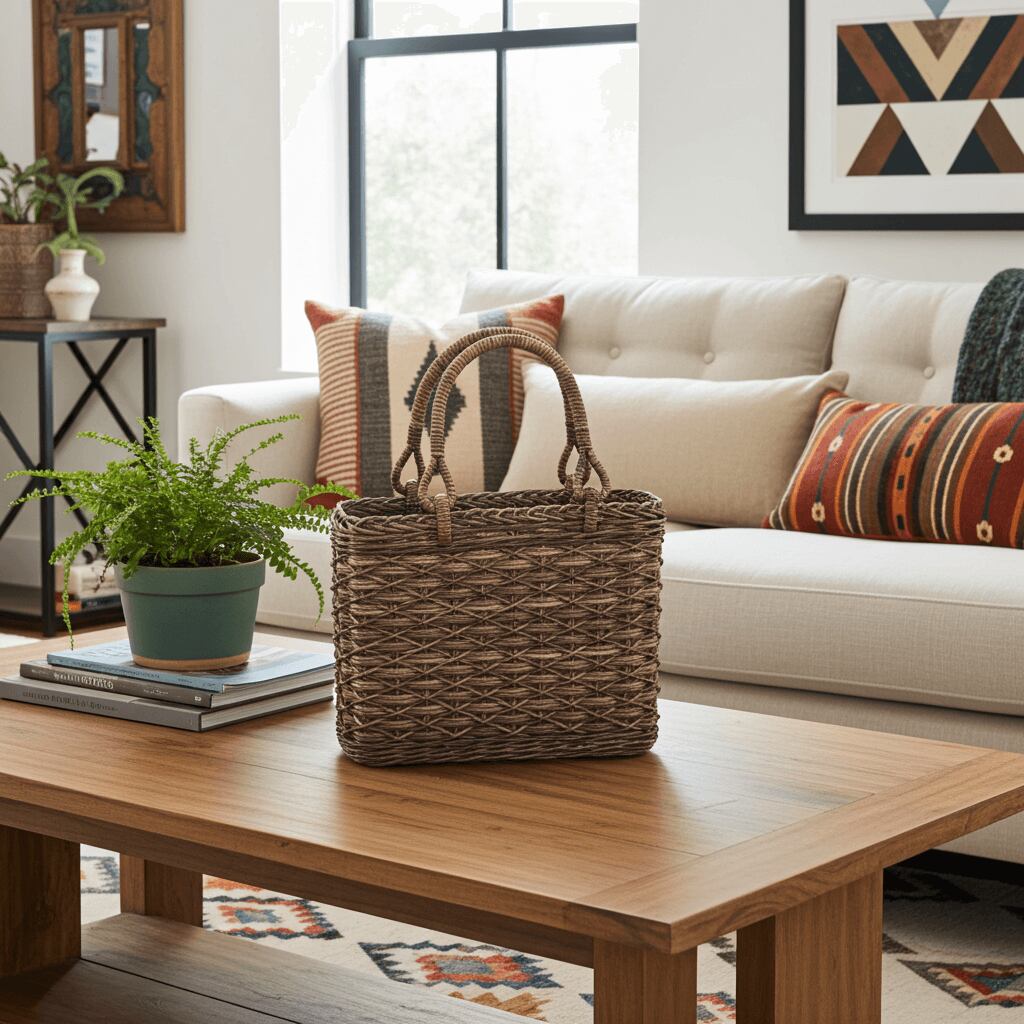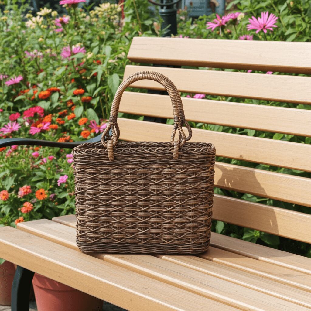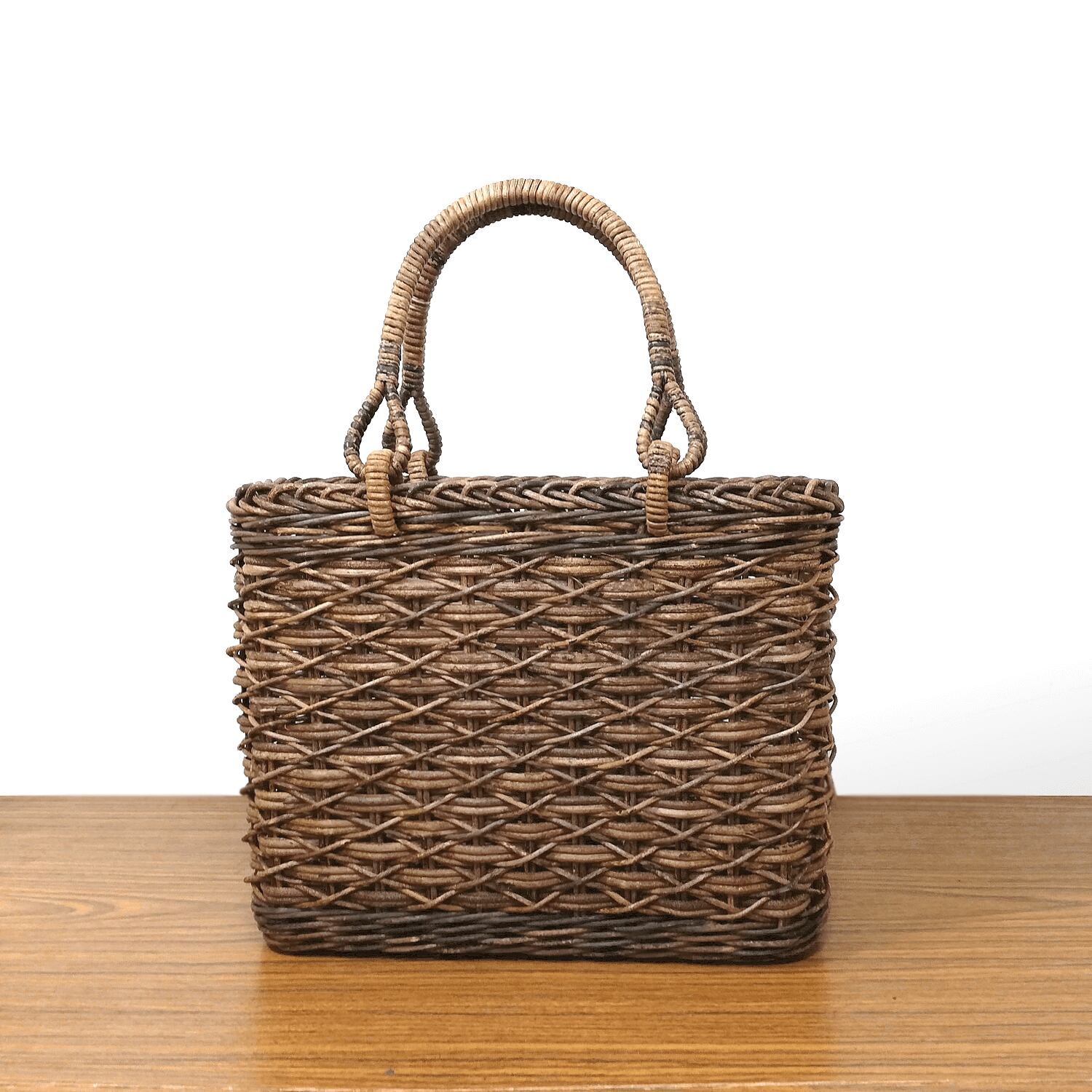 割引商品|たすき編み(小サイズ・四角底)薄型のあけび-かごバッグです。