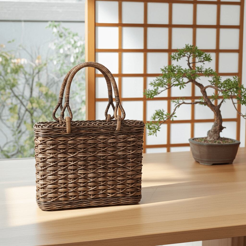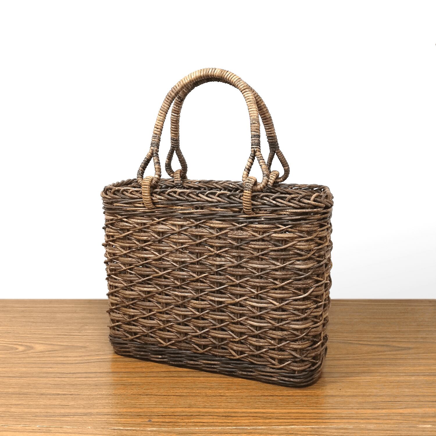 あけび-かごバッグ|割引品|たすき編み|小サイズ|四角底|薄型|黒あけび
