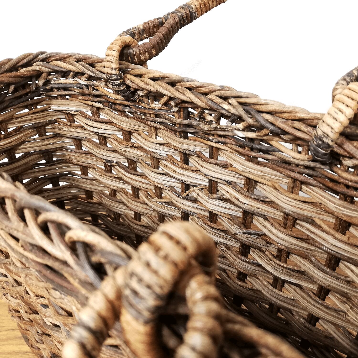 こちらの篭で使用している型は、かごが薄型になる代わりに、普通の小サイズよりも、高さや幅を2~3cm程大きくしているのが特徴で、マチ(内寸)については約10cm確保していますので、十分実用的なかごバッグになっています。
