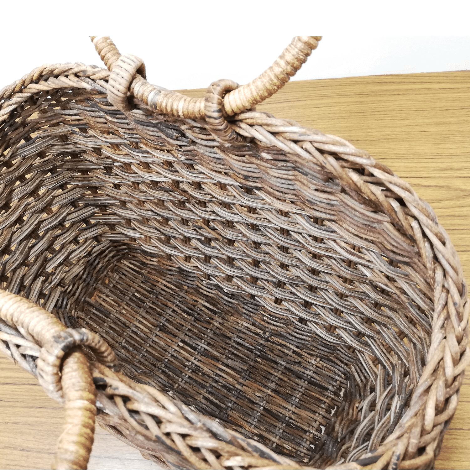 ※たすき編みは半芯を使用するため、かごの内部が白っぽい編み上がりになります。