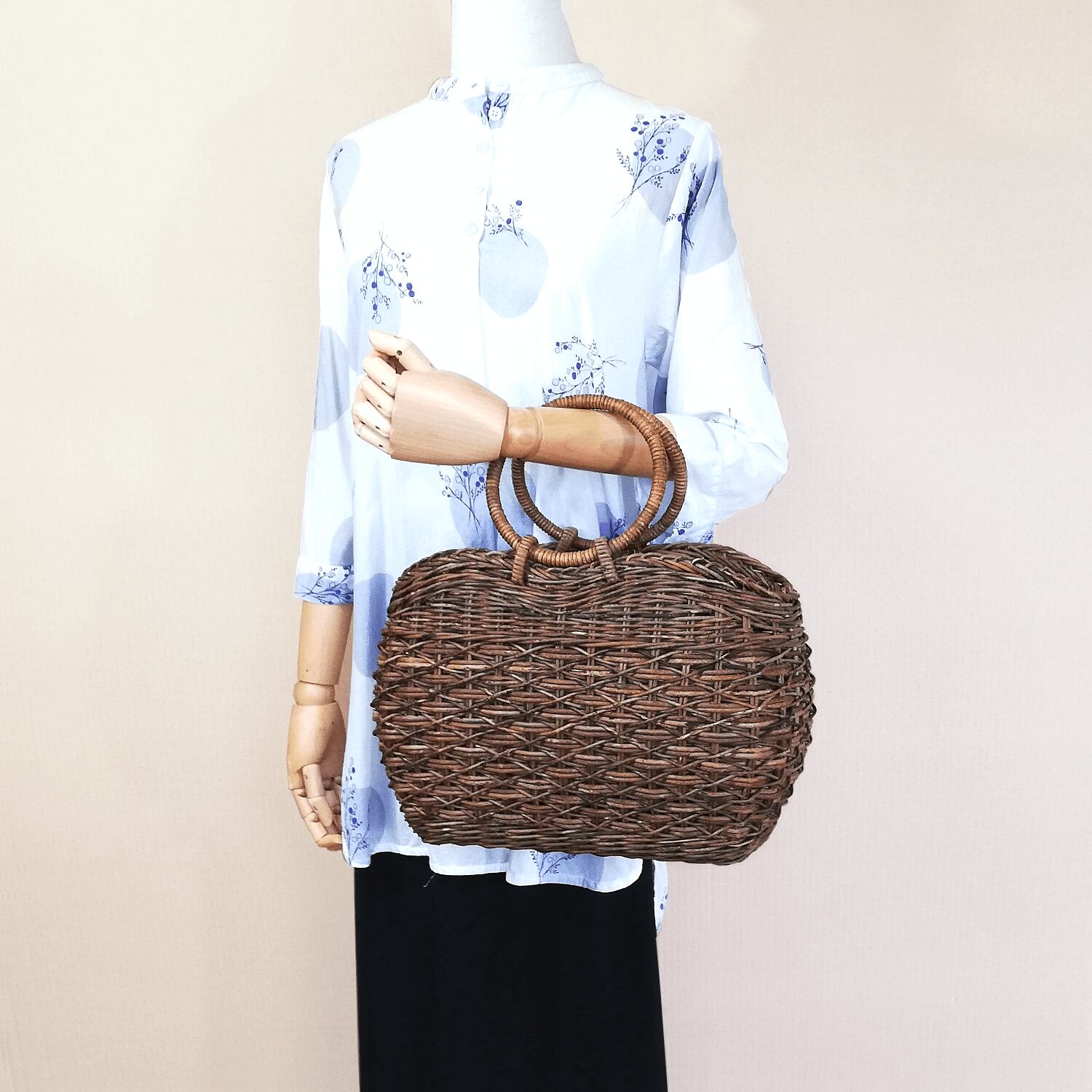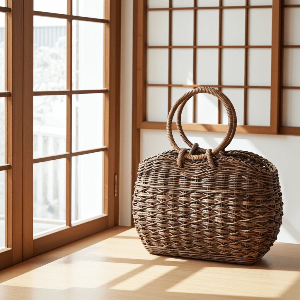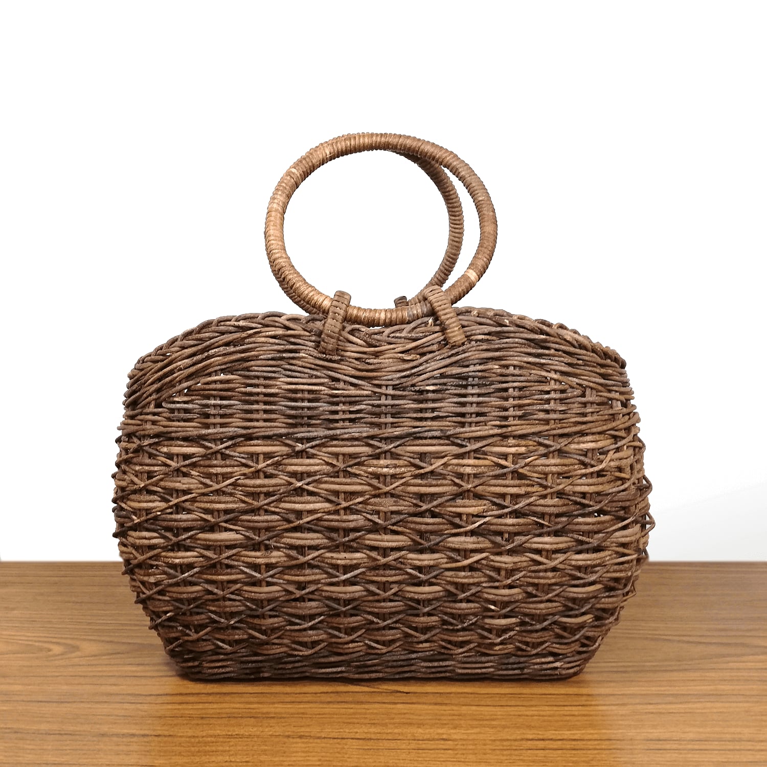 あけび-かごバッグ|たすき編み|中サイズ|四角底|胴張り|リング手