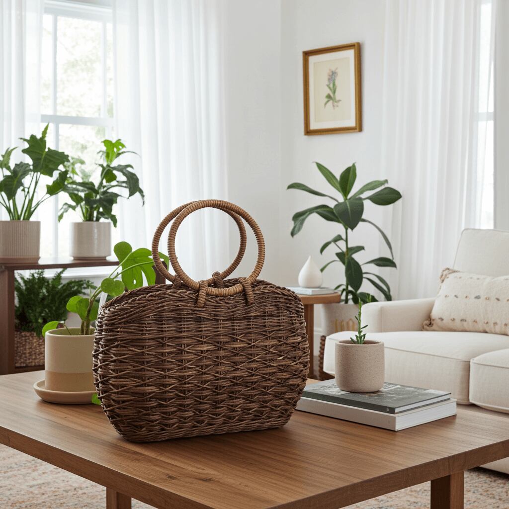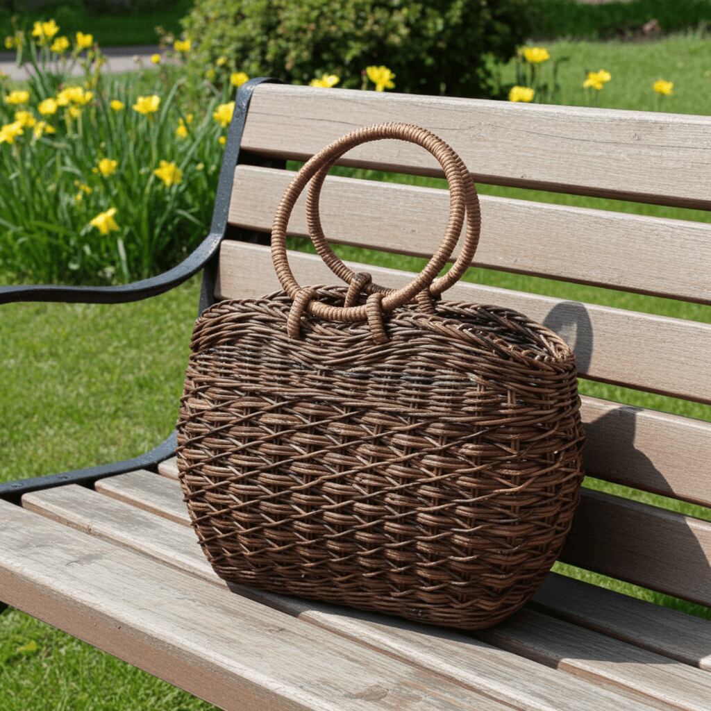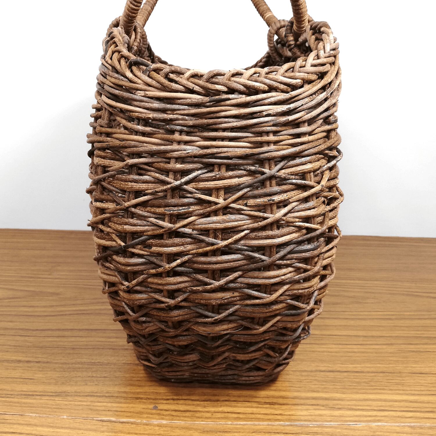 あけび-かごバッグ|たすき編み|中サイズ|四角底|胴張り|リング手