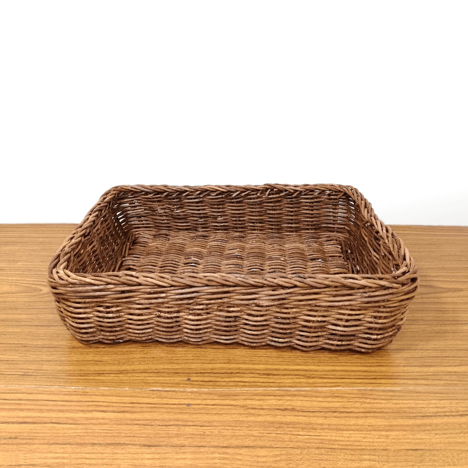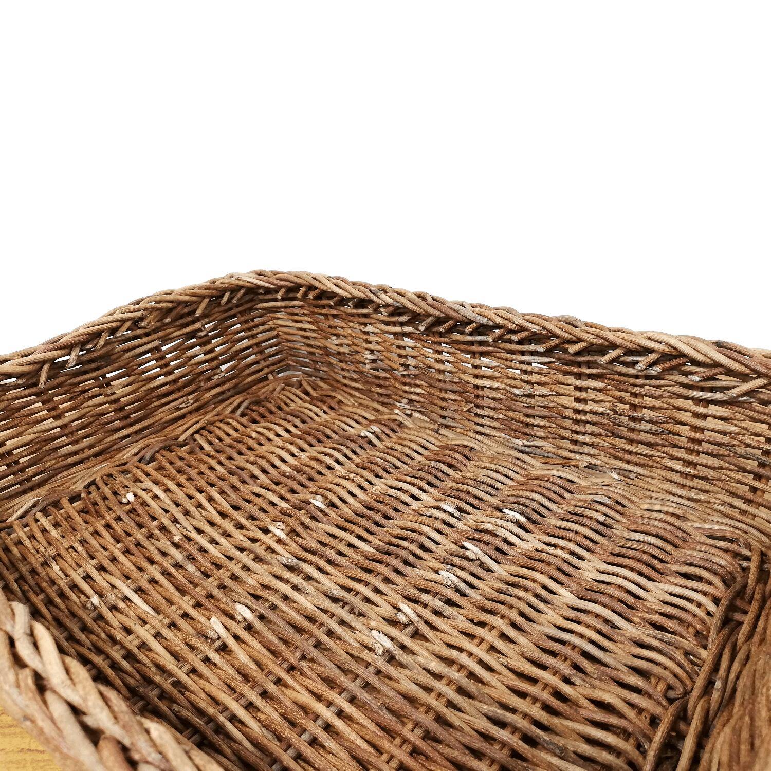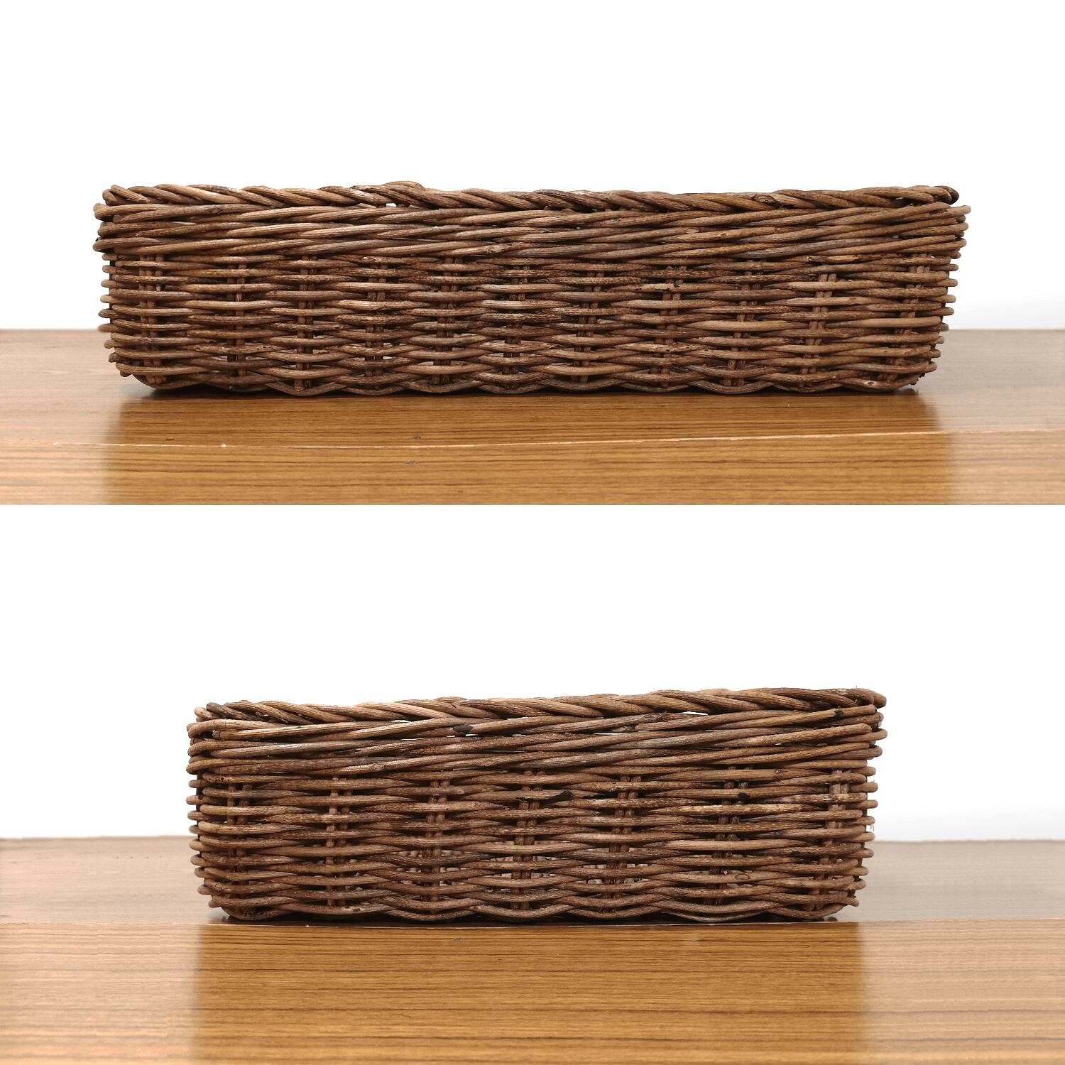 「並編み」と呼ばれる製法で編まれており、編みの凹凸が緩やかなため、編地もスベスベと使用感が良く、かごの形が単純明快で、どんなものでも無駄なく収納できるのが魅力のバスケットです。