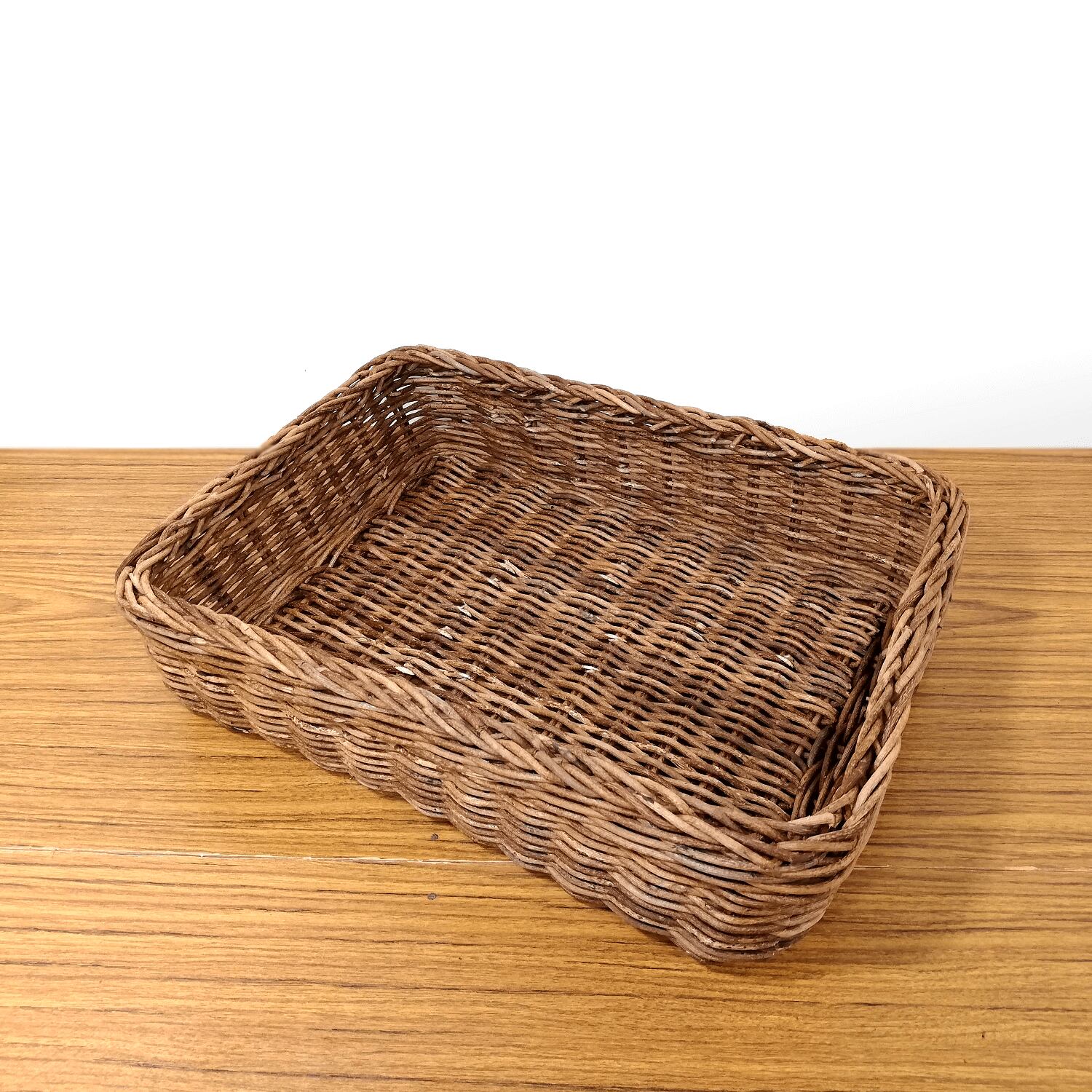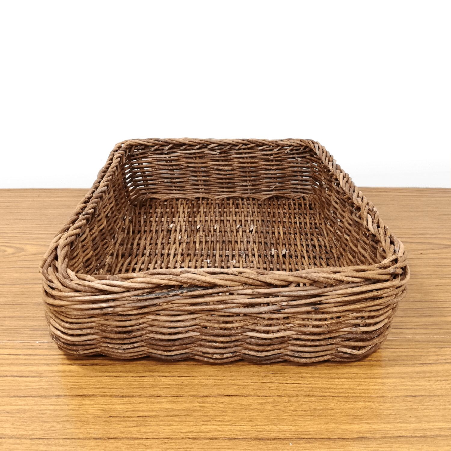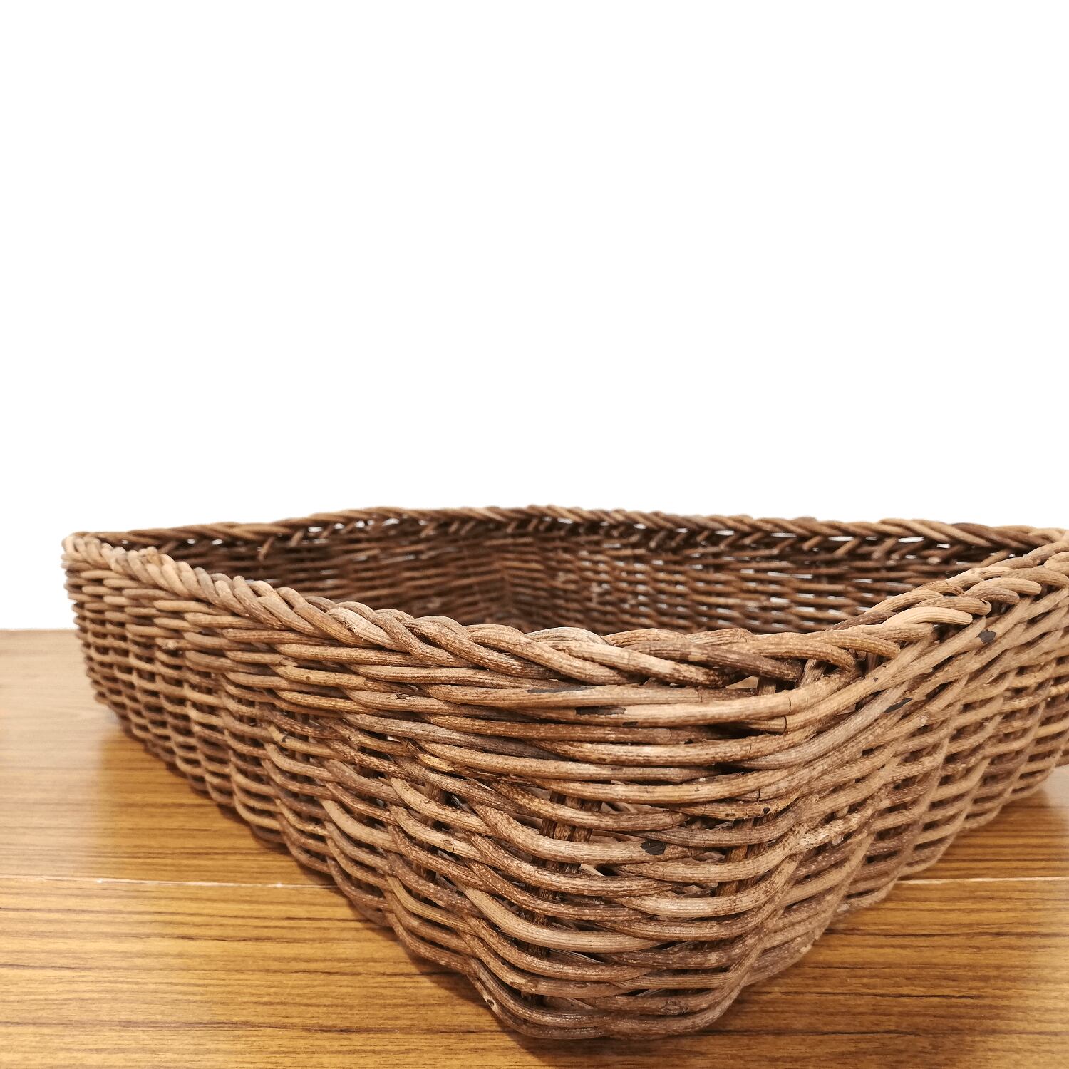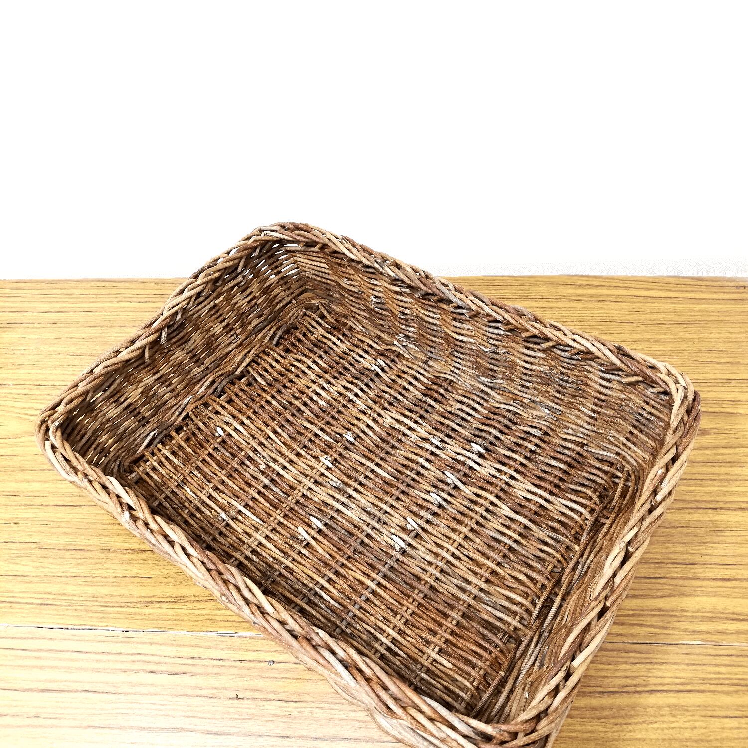「並編み」と呼ばれる製法で編まれており、編みの凹凸が緩やかなため、編地もスベスベと使用感が良く、かごの形が単純明快で、どんなものでも無駄なく収納できるのが魅力のバスケットです。
