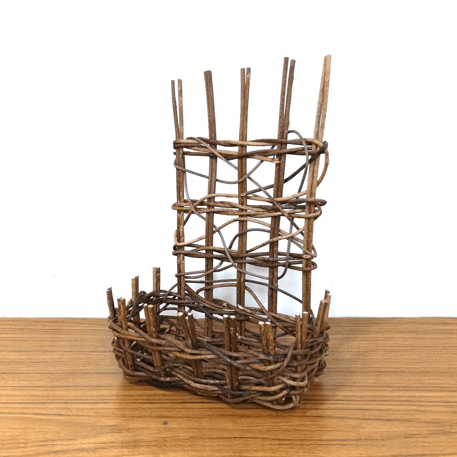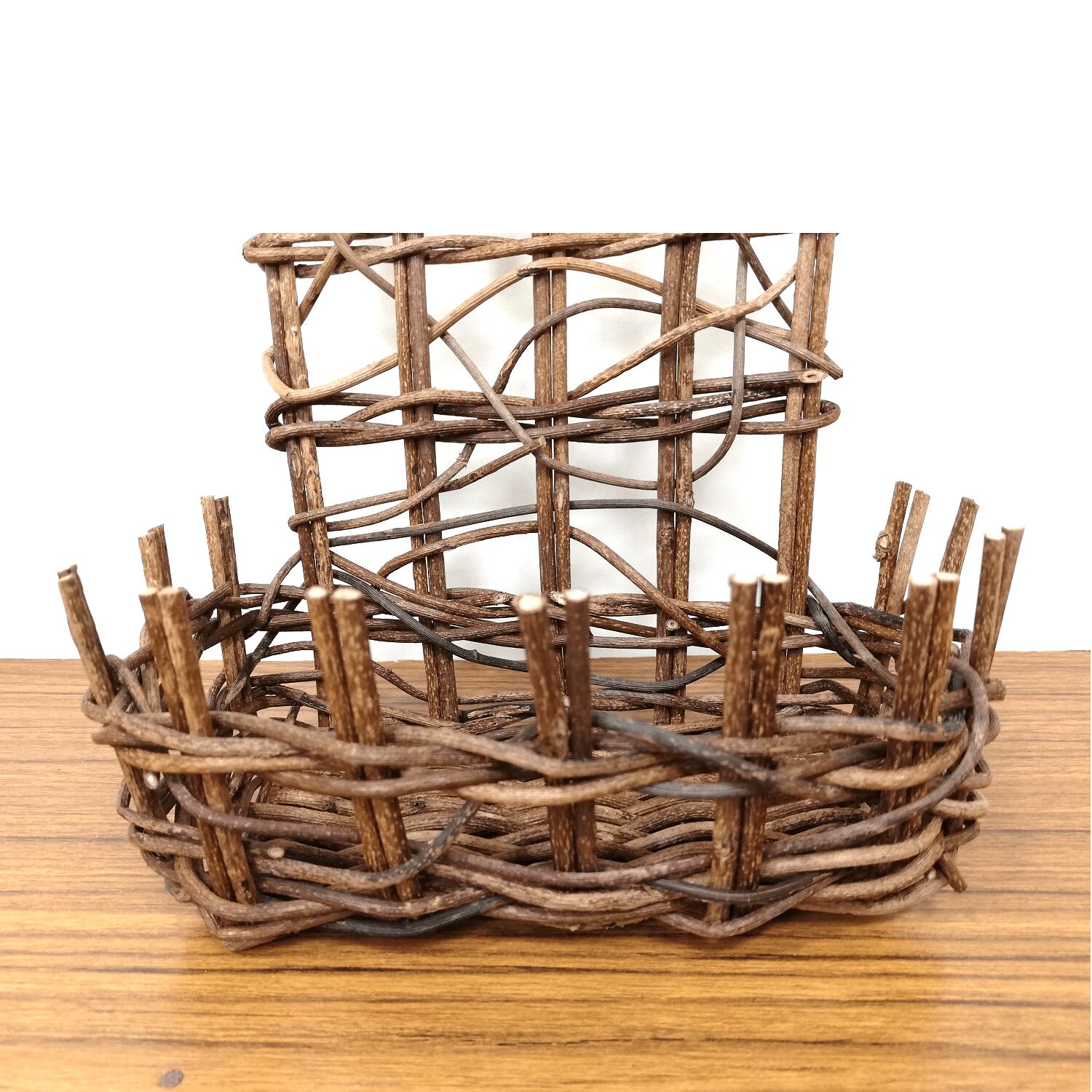 花瓶など、物が安定して置けるよう、かごの底面は凹凸の少ない「並編み」で仕上げています。