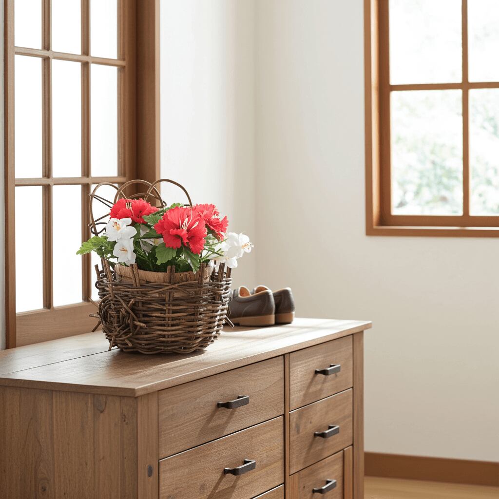 花瓶受けや鉢カバーとして、造花や生花を生けてお使いいただけるあけびのフラワースタンドです。