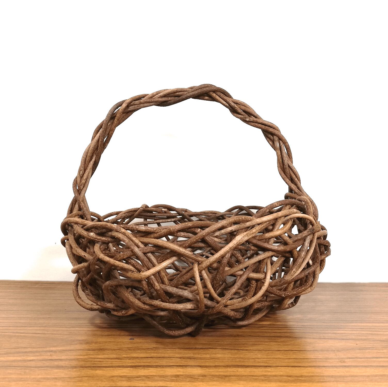 あけびかご|ミニバスケット|菓子器|乱れ編み|小サイズ|円型|一本手