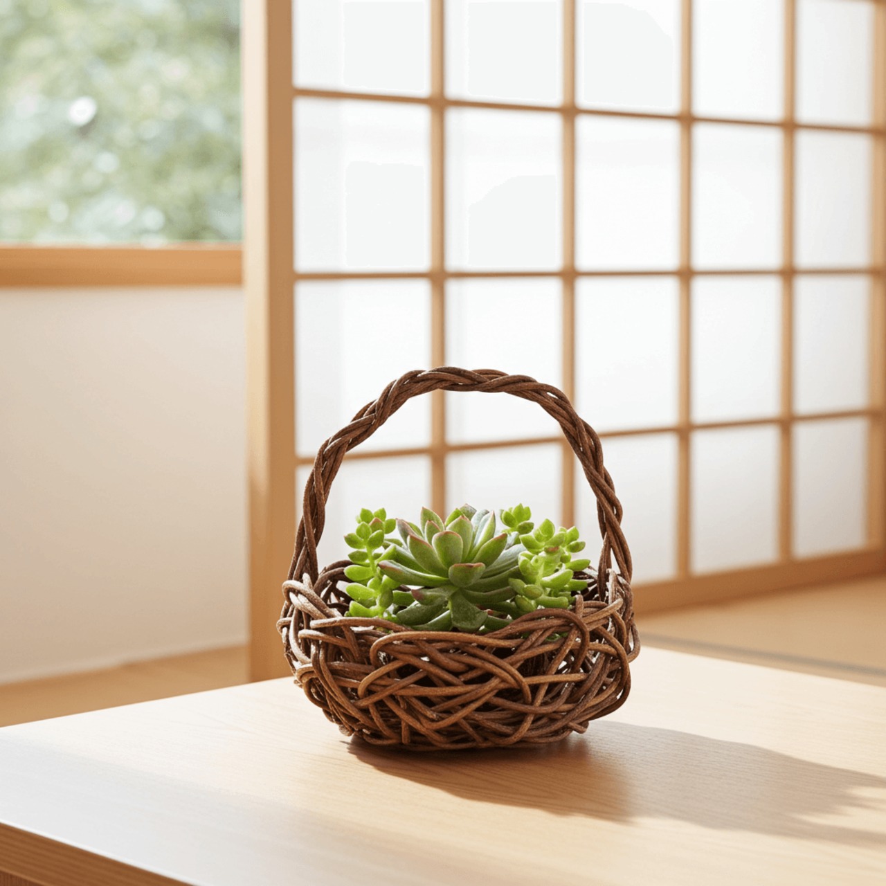 一点商品|乱れ編み・円型・一本手のあけびのミニバスケットです。