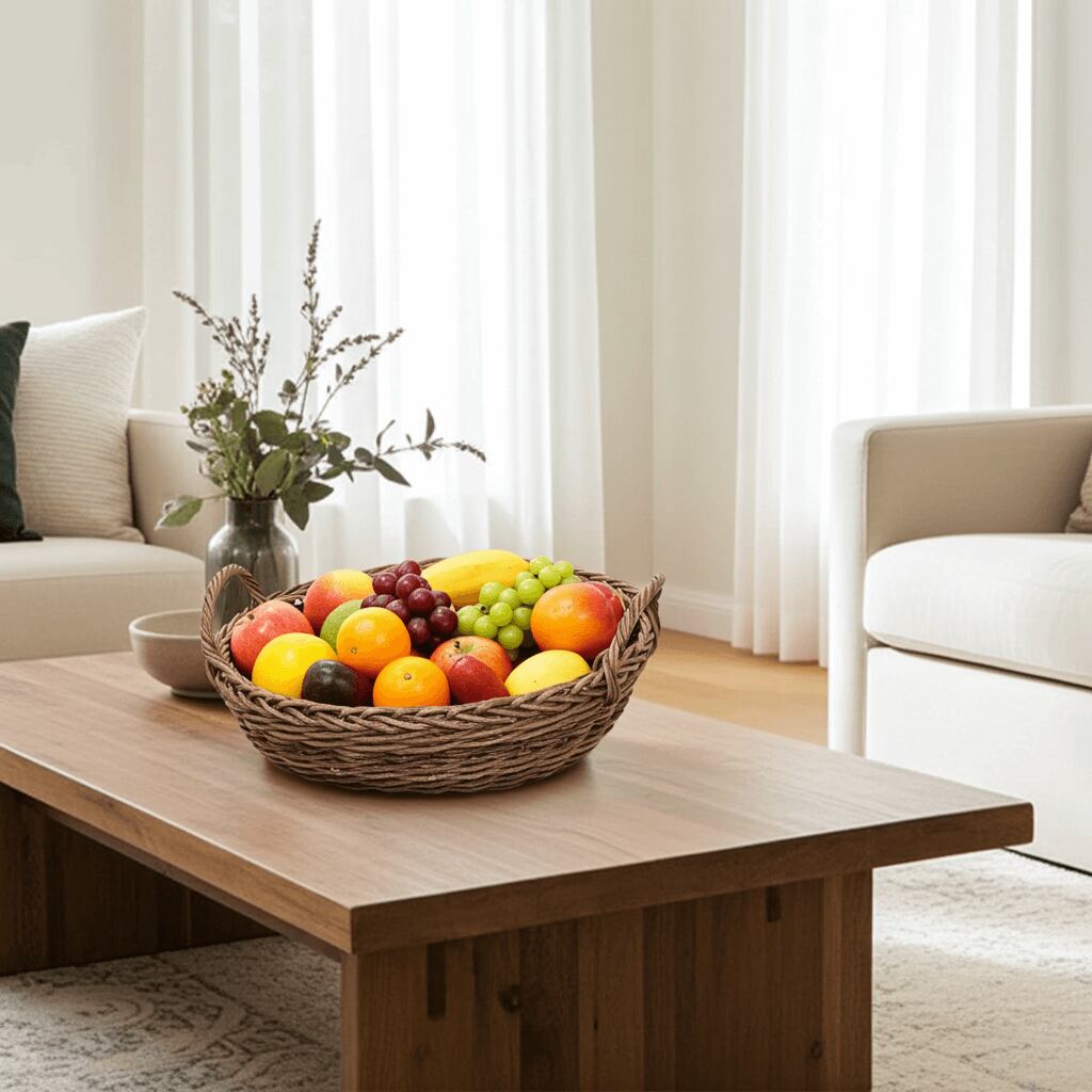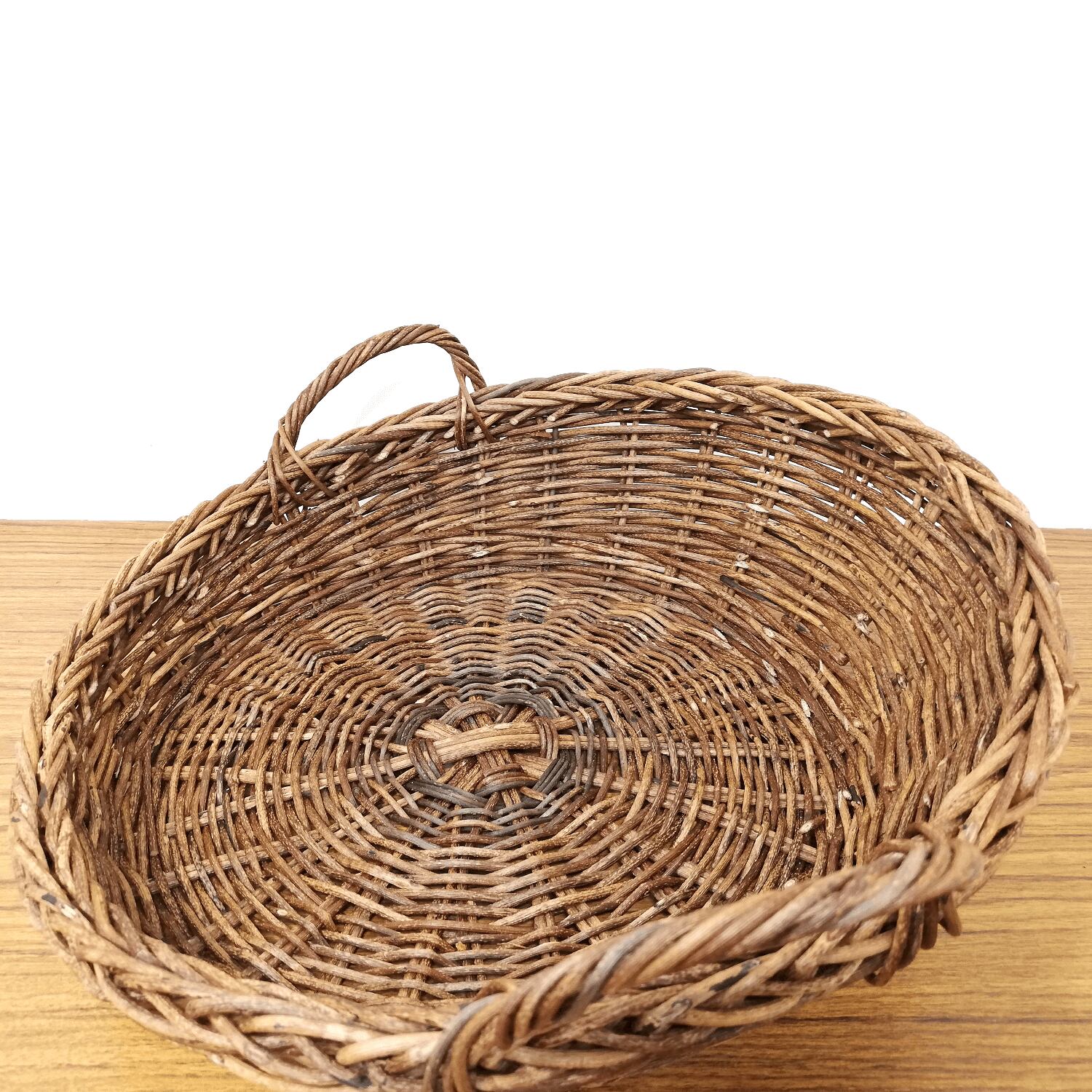 かご内部の底面の内径は約25cmと、やや大き目の篭ですので、ひとつの使い方だけでなく、多用途にお使いいただける実用性の高いあけびかごです。