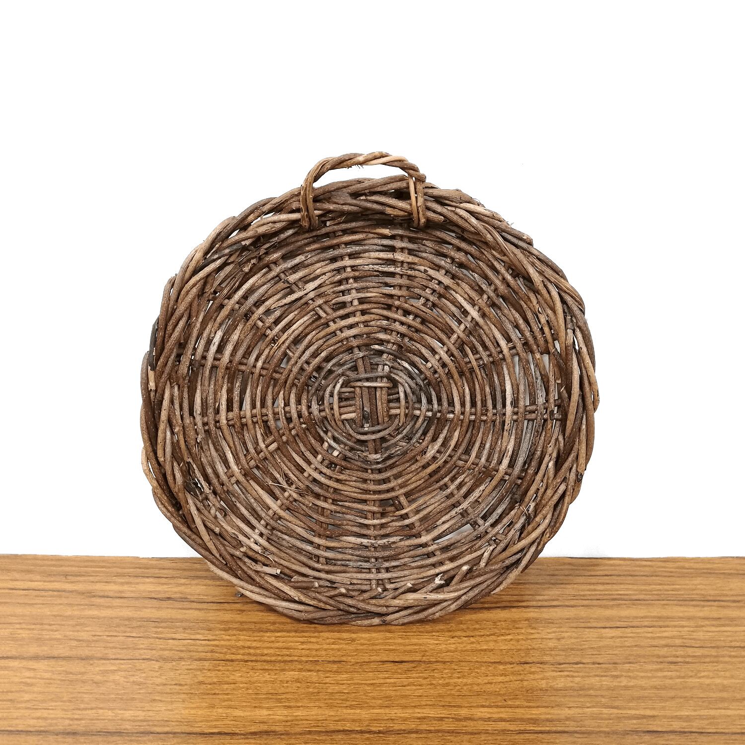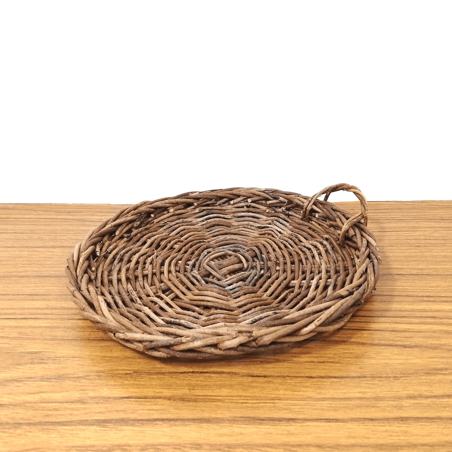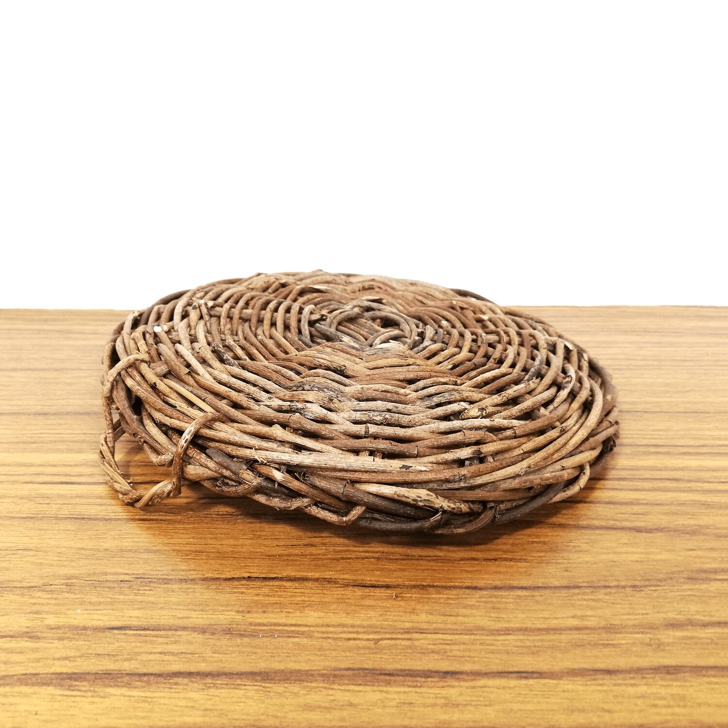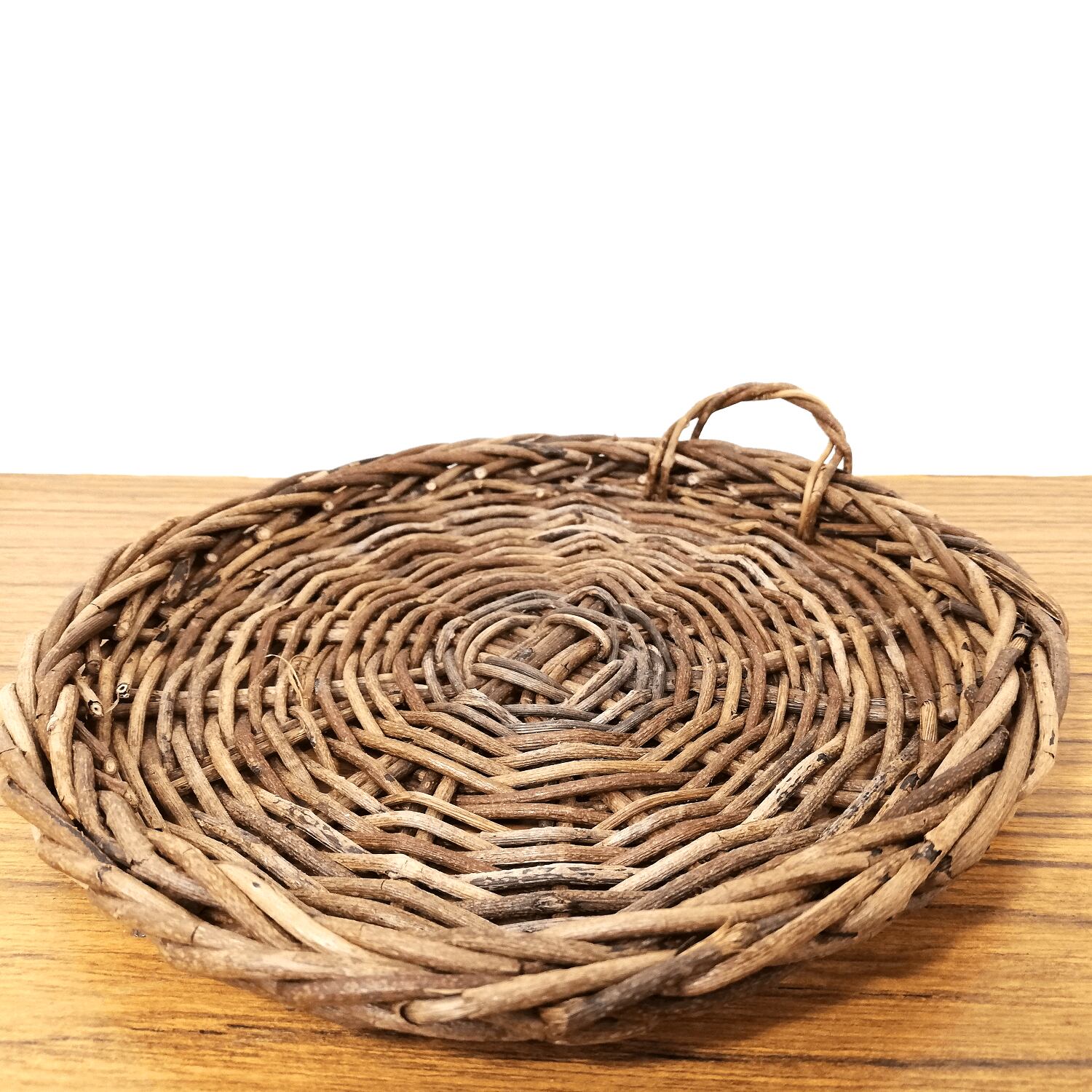 あけび蔓を円形に編み込み、少し深さを付けています。