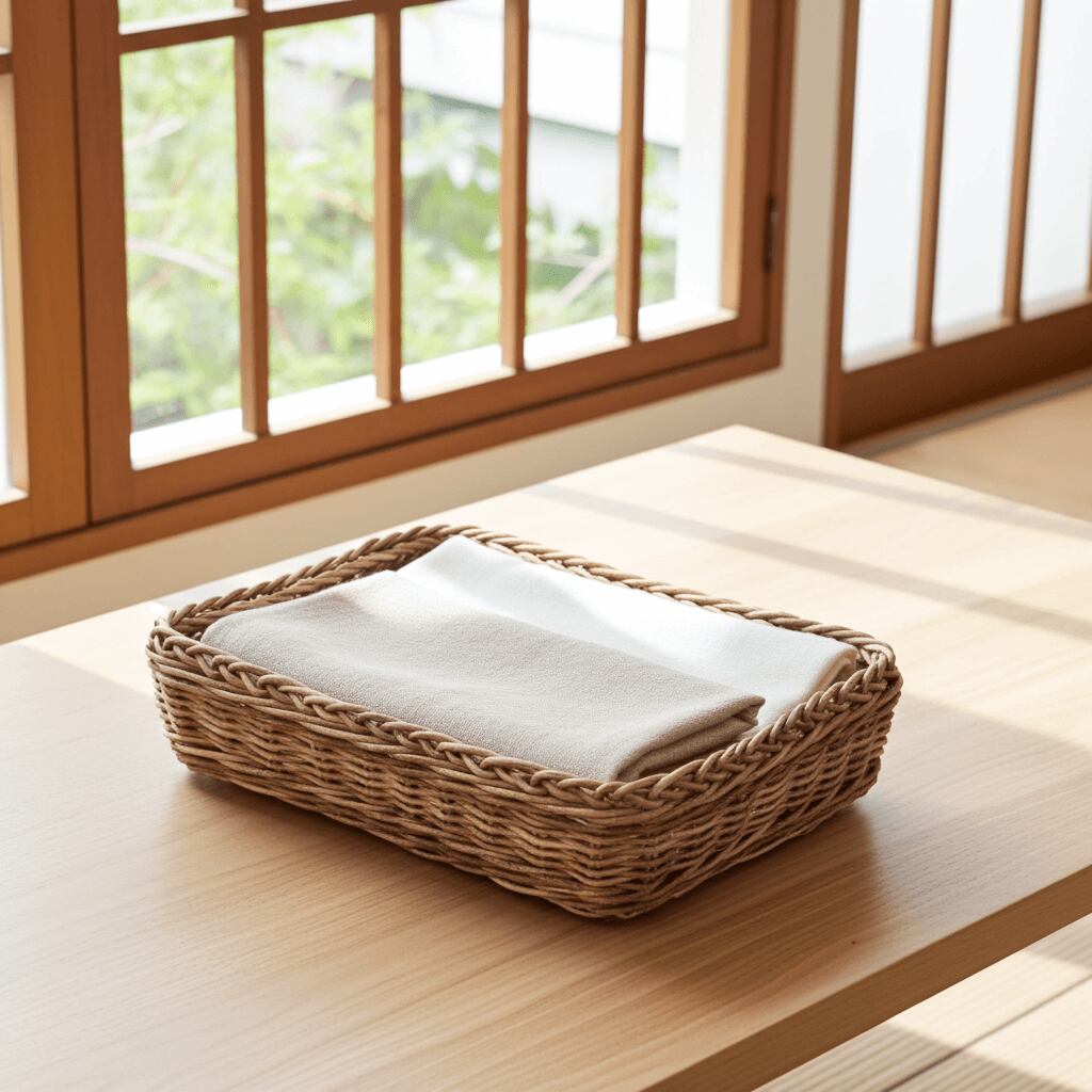 「並編み」と呼ばれるシンプルな製法で編み込んでおり、物の引っ掛かりにくい作りになっていますので、雑多な小物類などを整理するときにも重宝します。