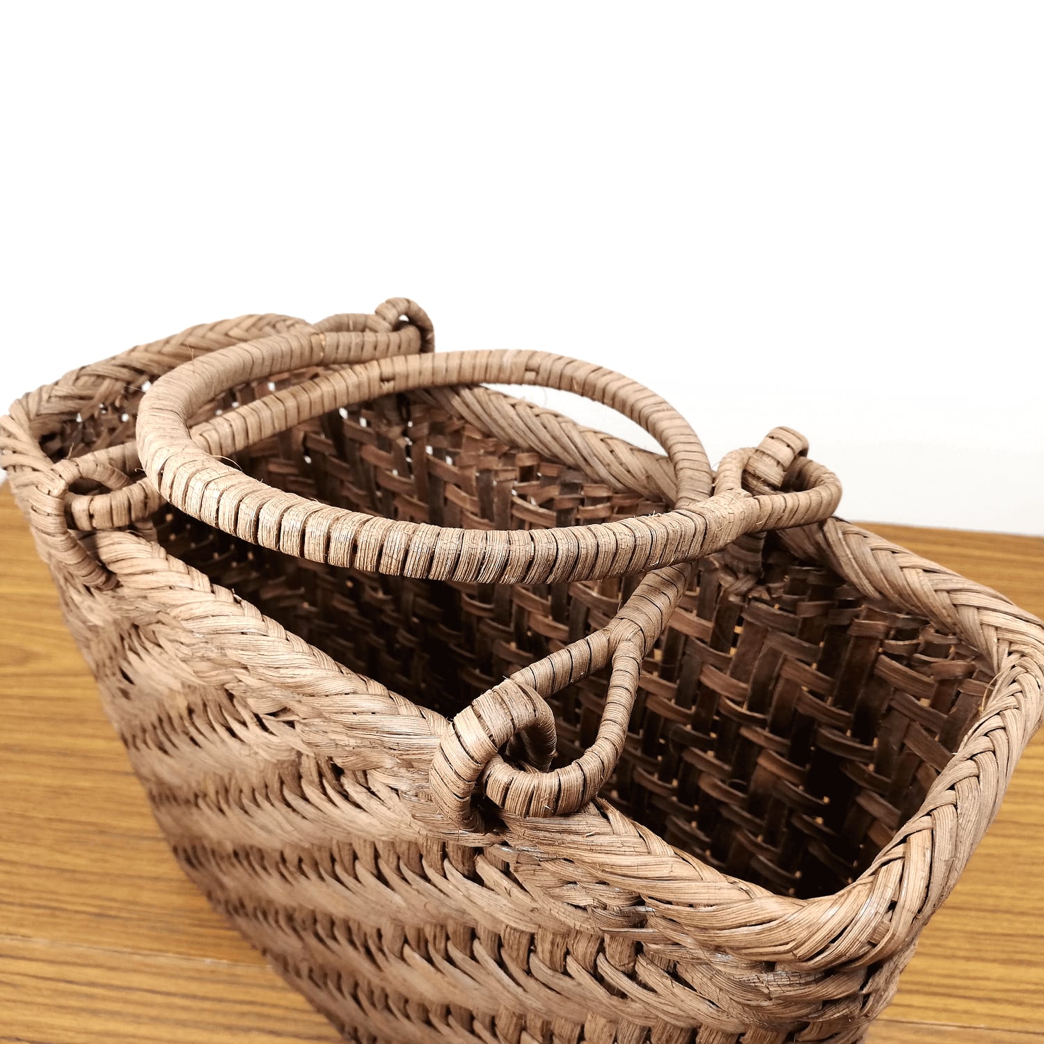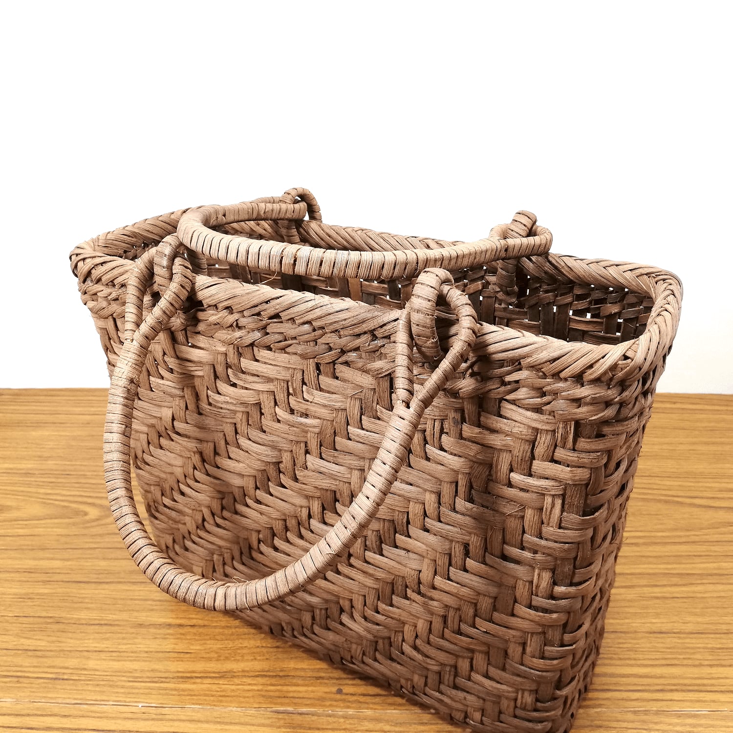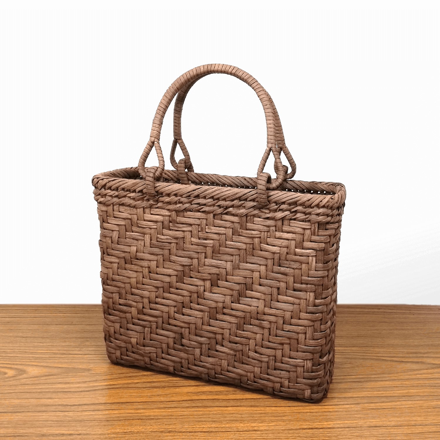 山ぶどう-かごバッグ|国産・山葡萄|網代編み|中サイズ|四角底|薄型