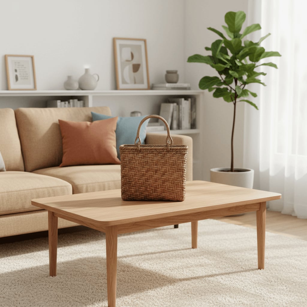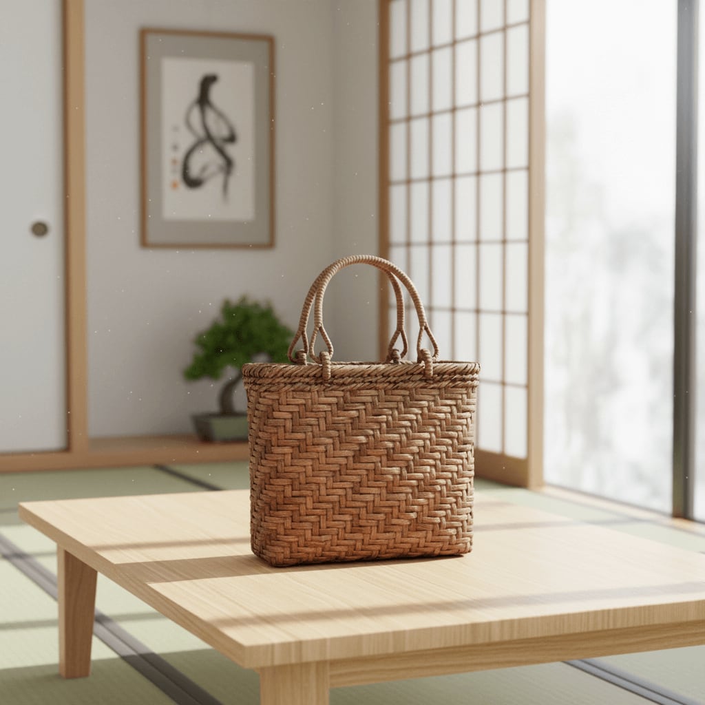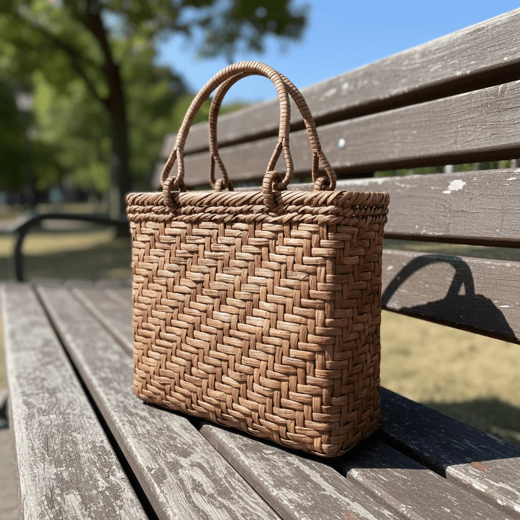 山ぶどう-かごバッグ|国産・山葡萄|網代編み|中サイズ|四角底|薄型