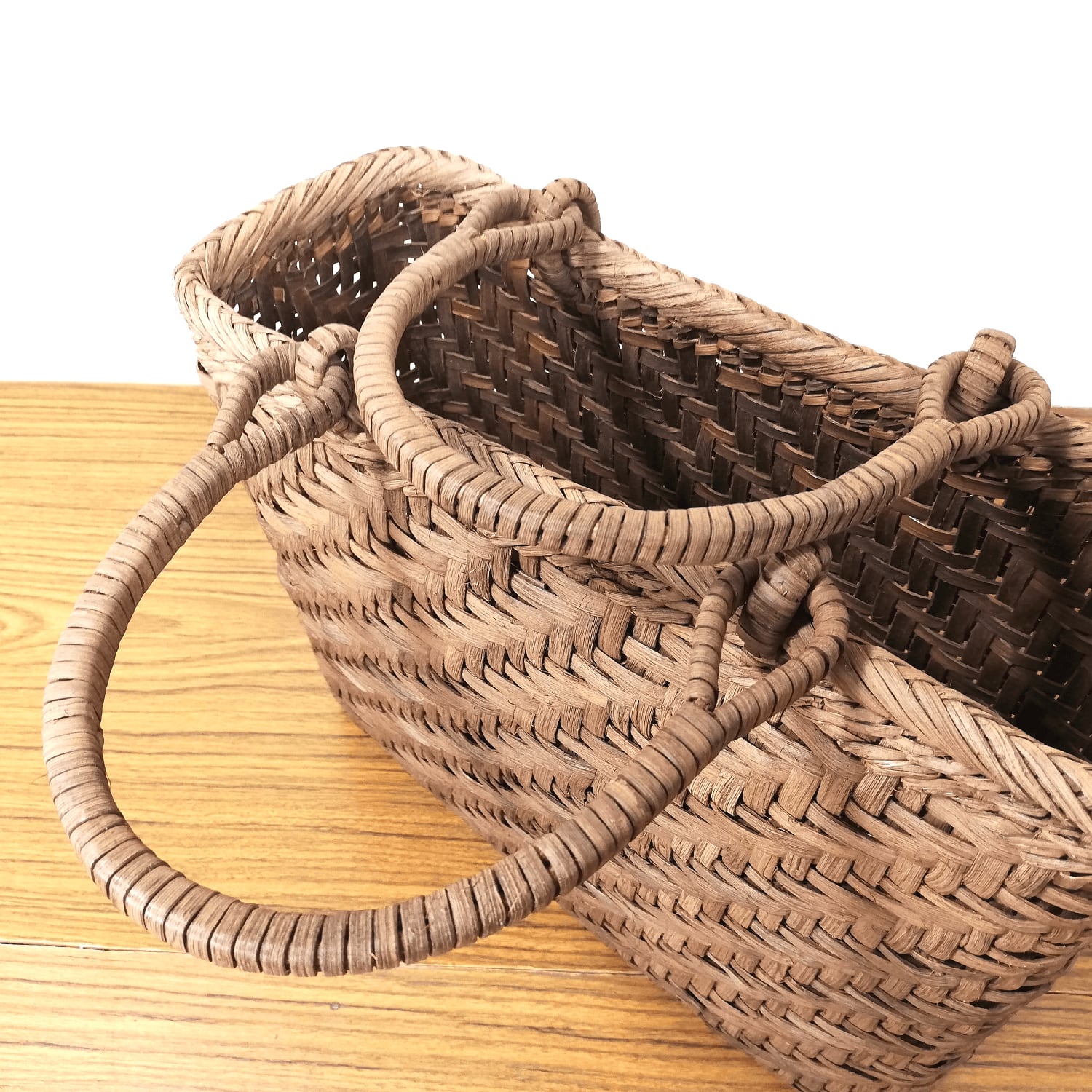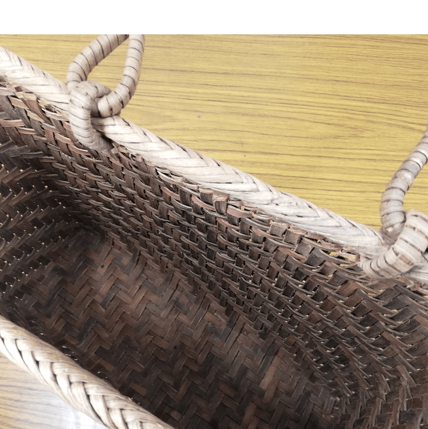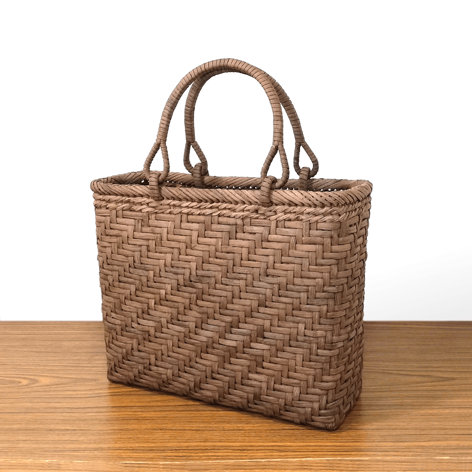 山ぶどう-かごバッグ|国産・山葡萄|網代編み|中サイズ|四角底|薄型