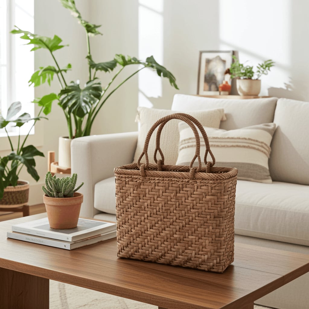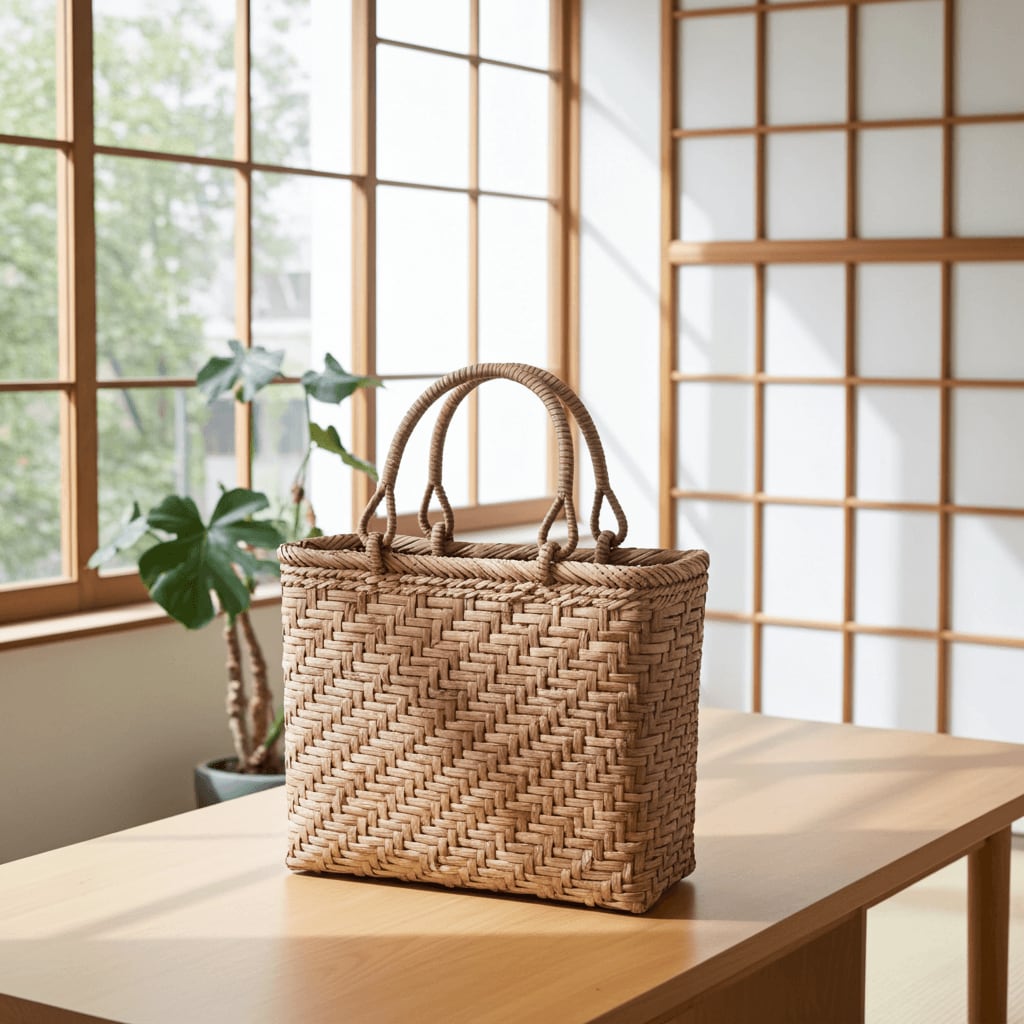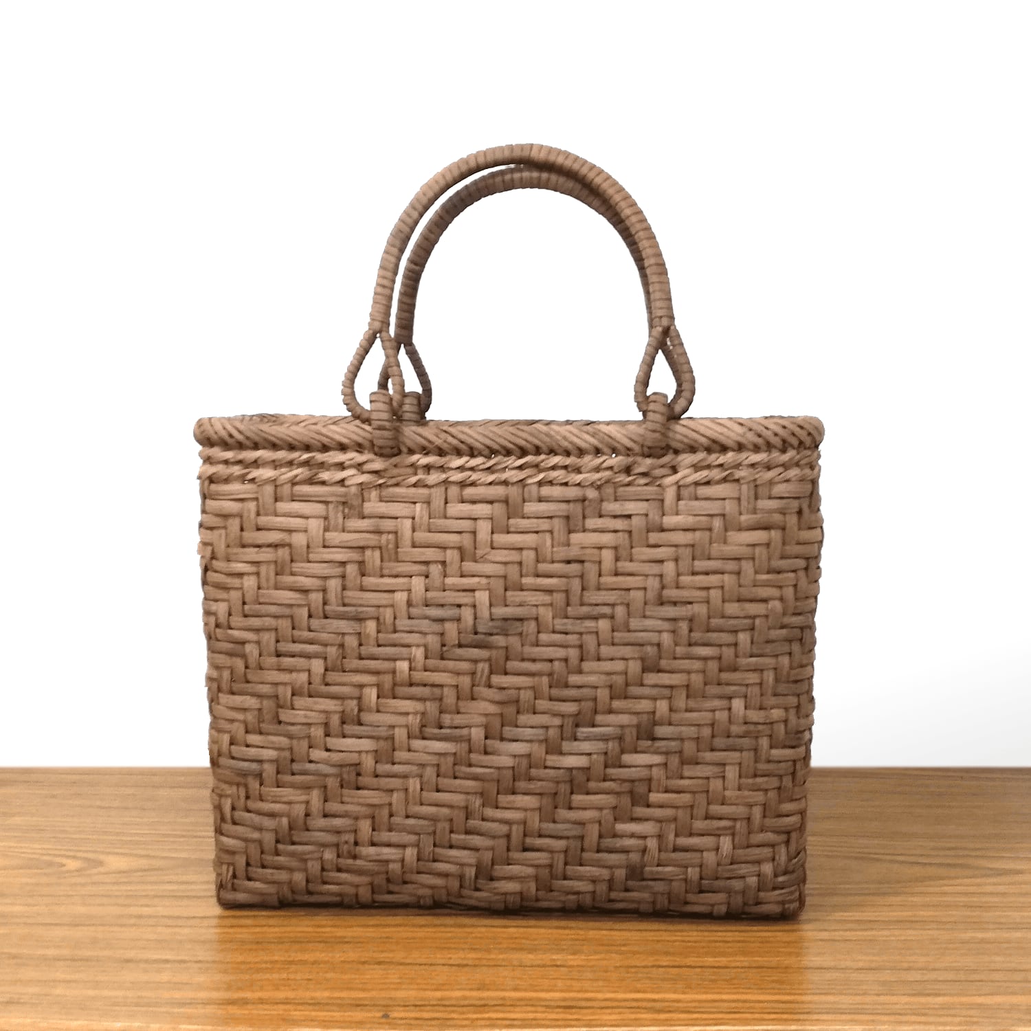 山ぶどう-かごバッグ|国産・山葡萄|網代編み|中サイズ|四角底|薄型