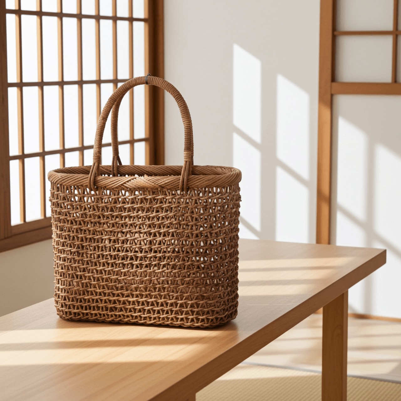 あけび-かごバッグ|こだし編み|中サイズ|小判底|薄型