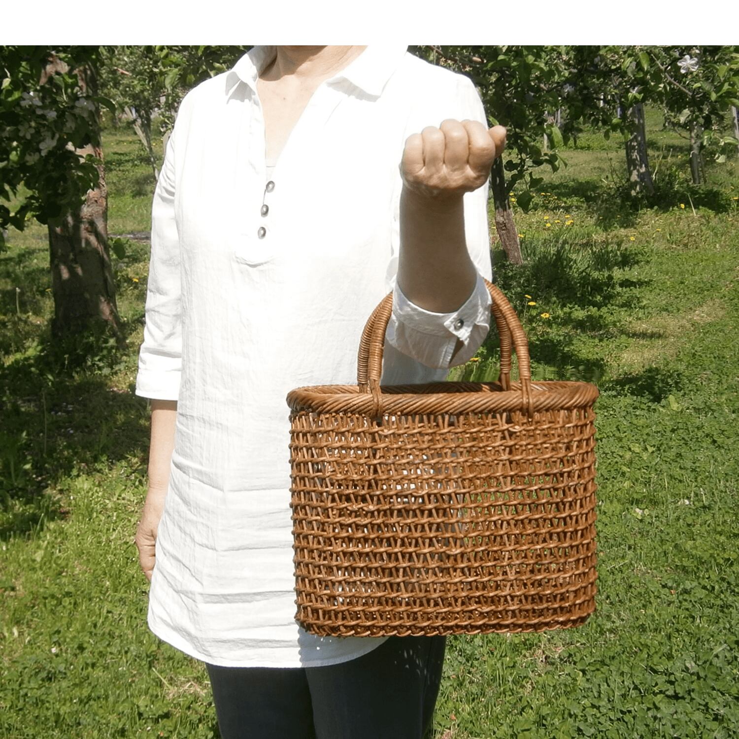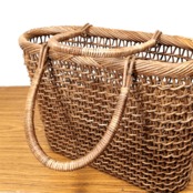 かごの強度についても、太めのあけび蔓を縦・横 目を細かく編み込んでいるため、型崩れが起こりません。