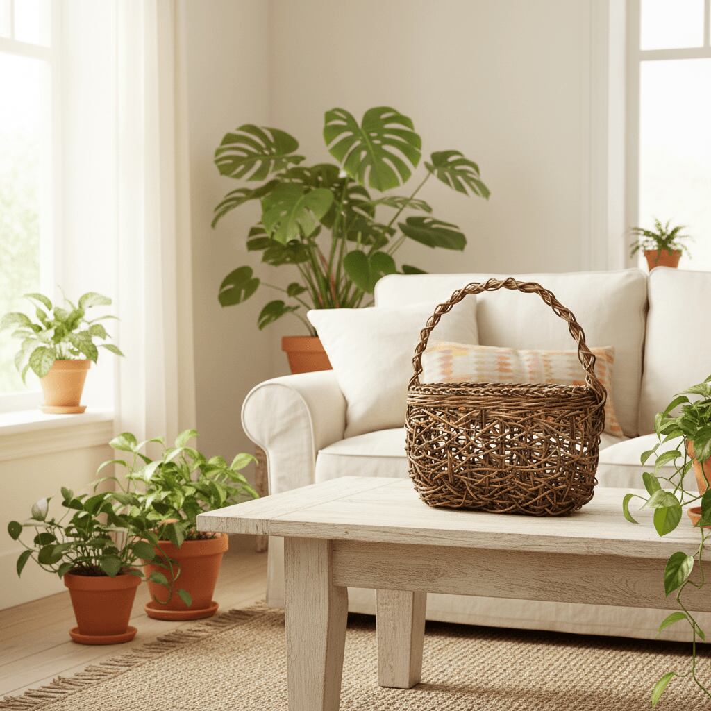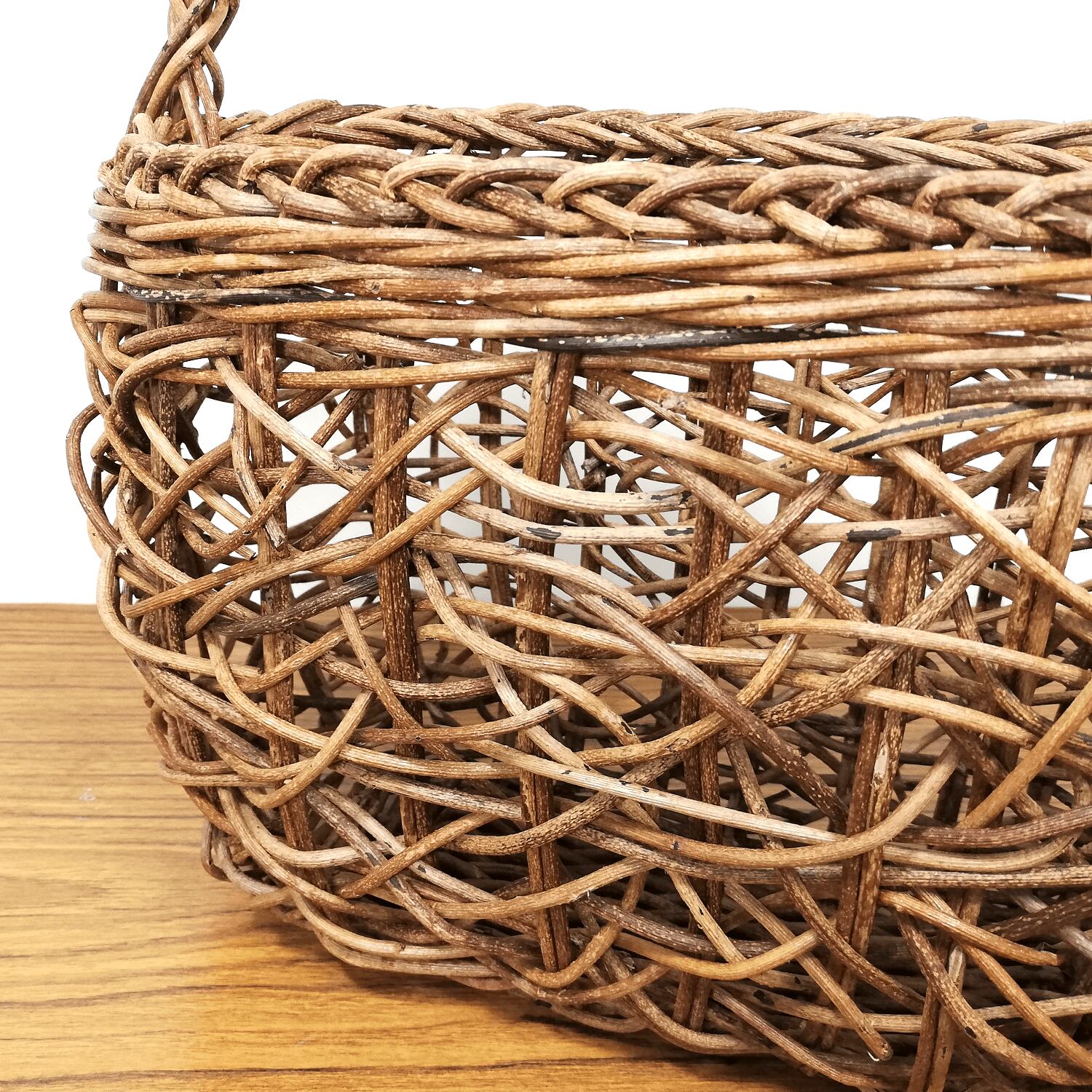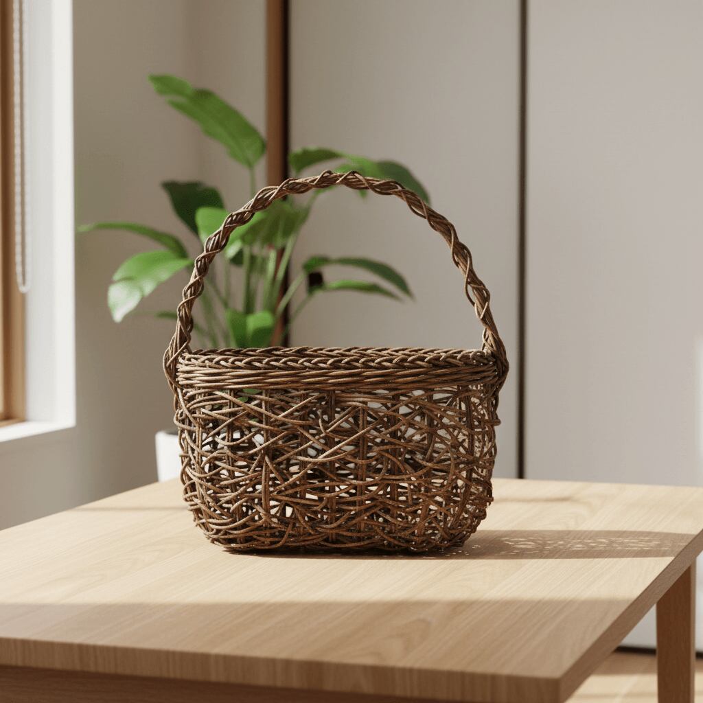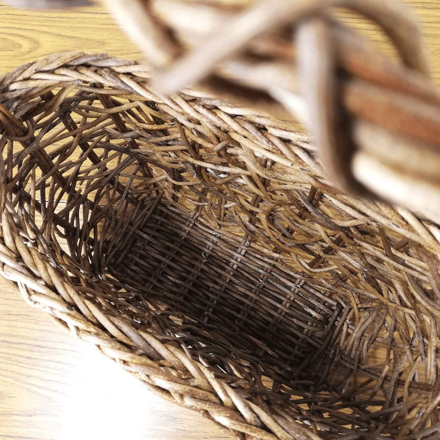 持ち手の一本手は、かごに物を入れて持ち運んでも問題がないようしっかりと固定されています。