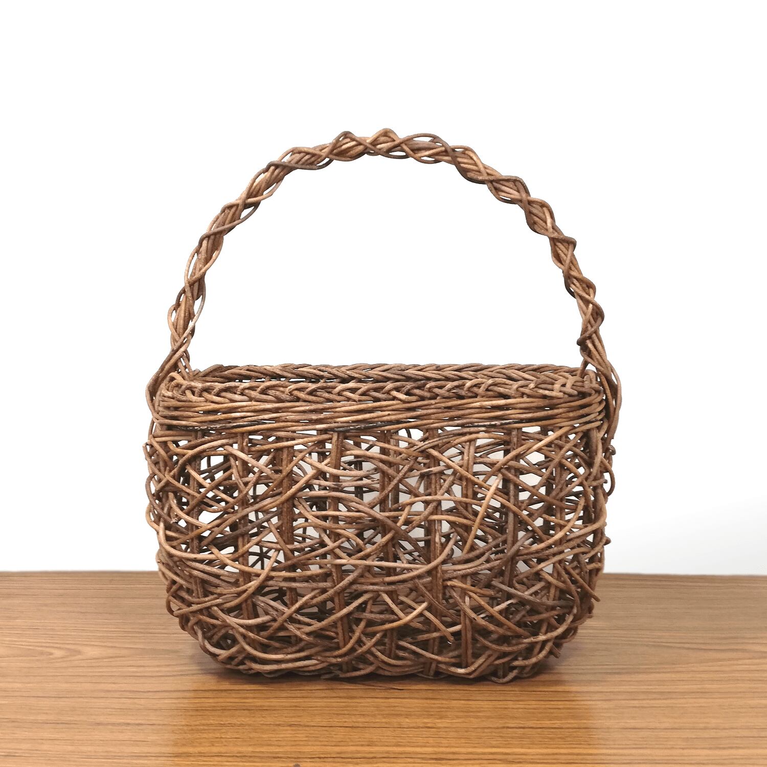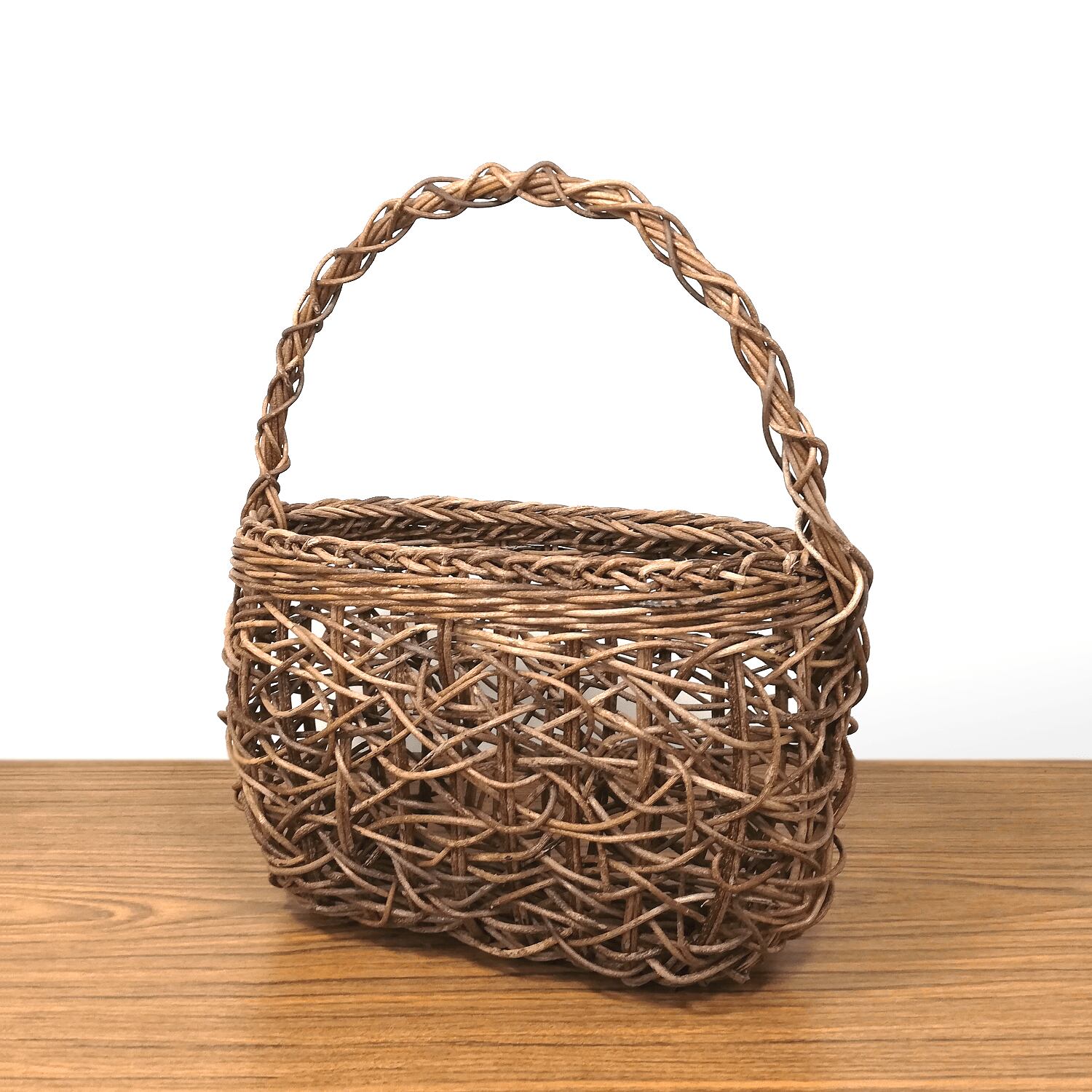 あけび-かごバッグ|乱れ編み|中サイズ|胴張り|舟底|薄型|一本手