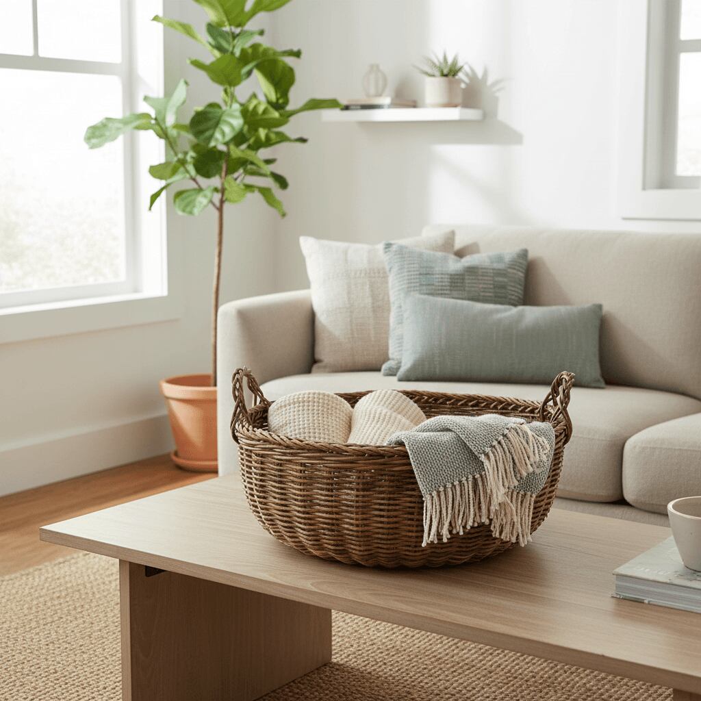 並編みと呼ばれる最もシンプルな編み方で編み組みしており、編地の凹凸が緩やかなため、かごの内部もすっきり機能的にご使用いただけます。
